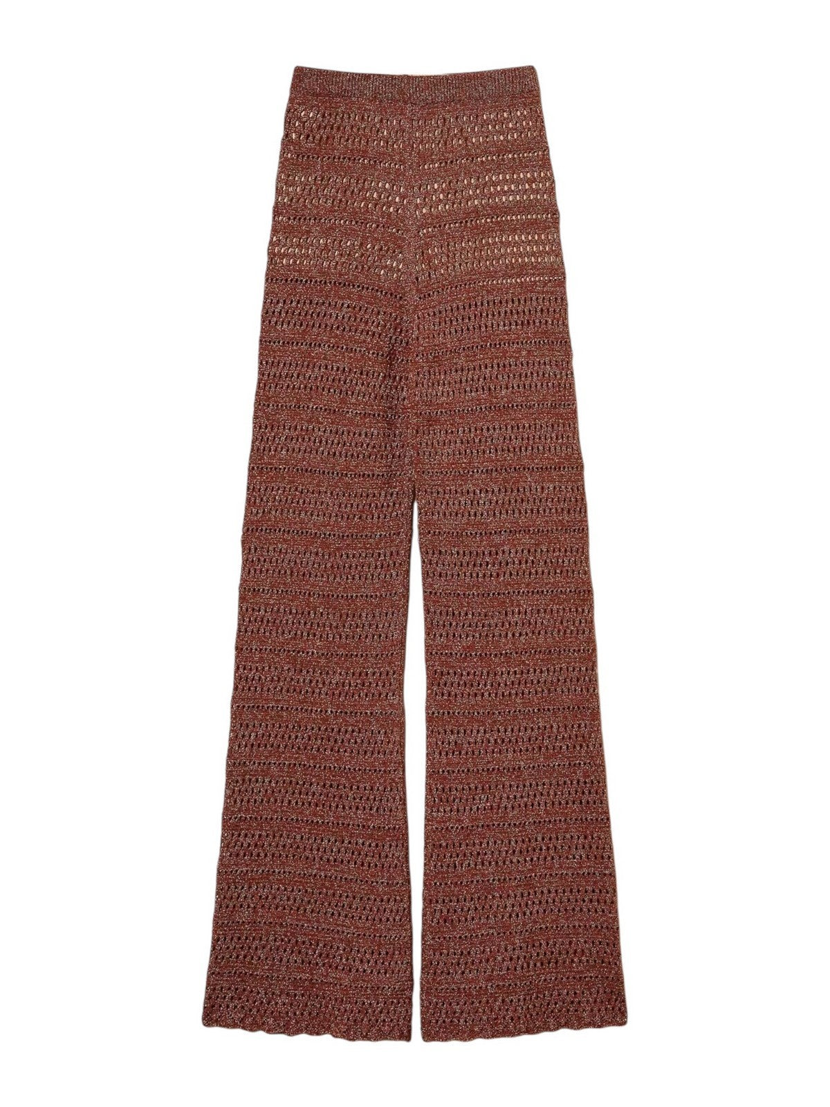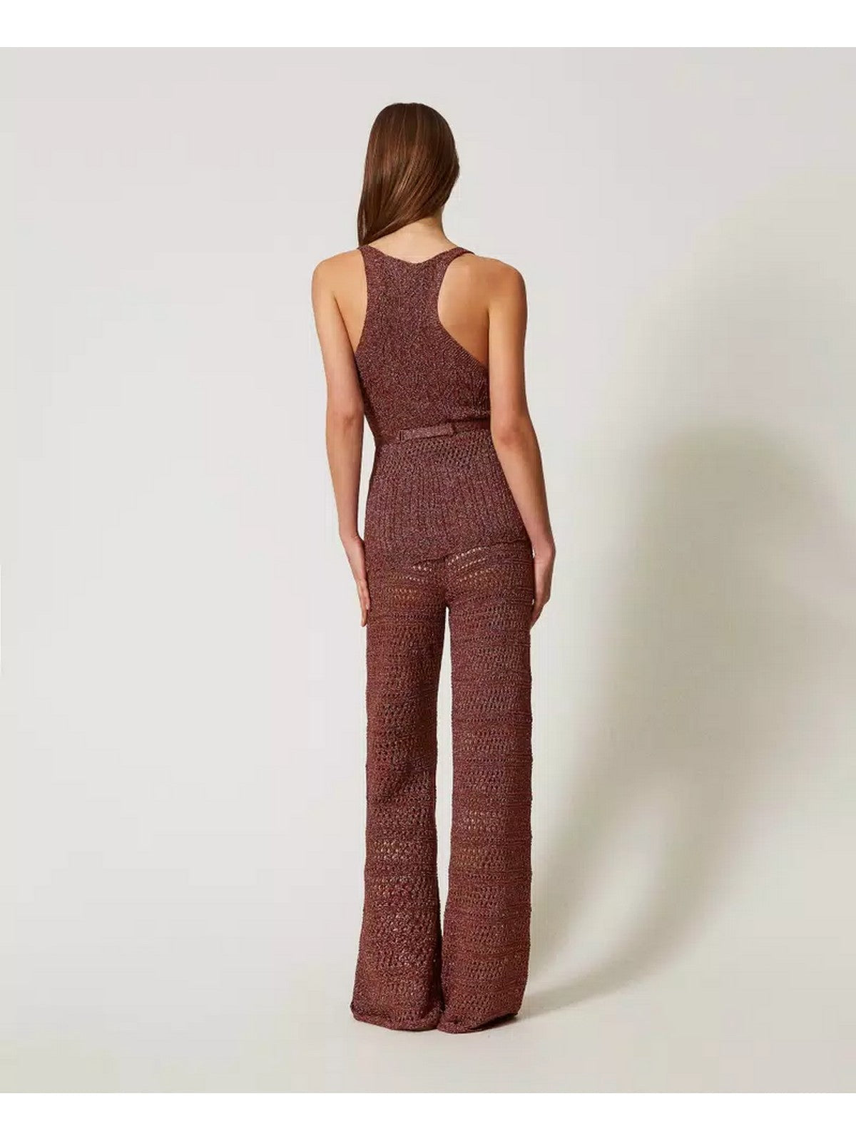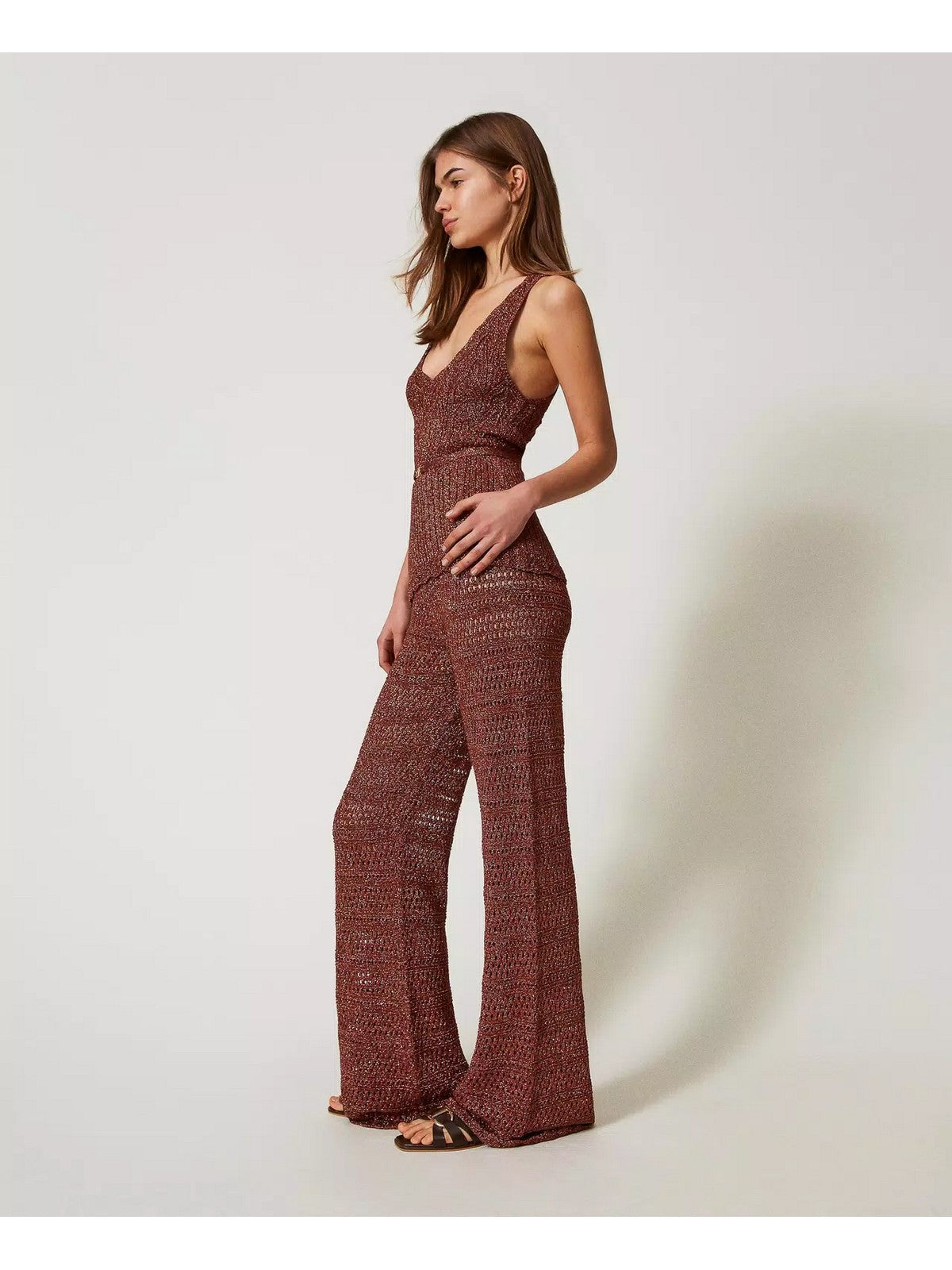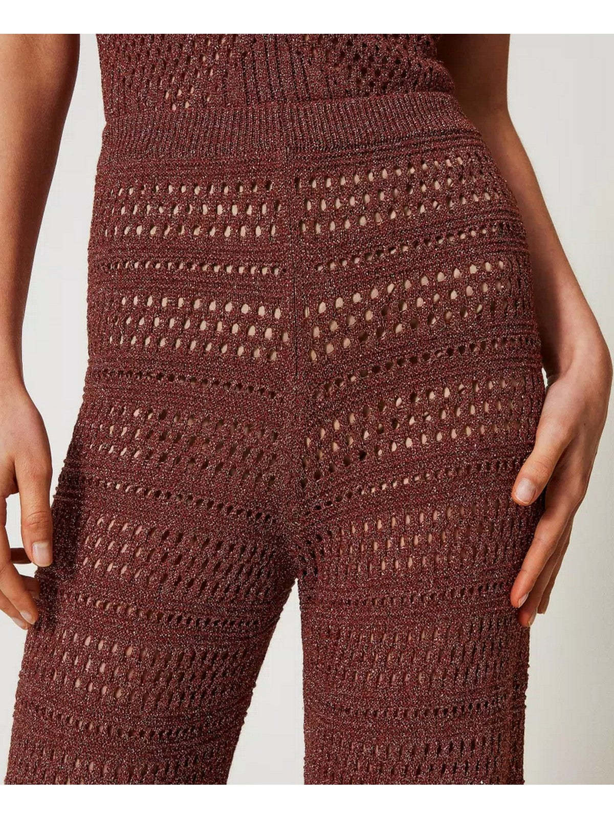 Pantaloni in maglia TWINSET di misto viscosa lurex con lavorazione punzonata alternata a punti links con effetto righe orizzontali.