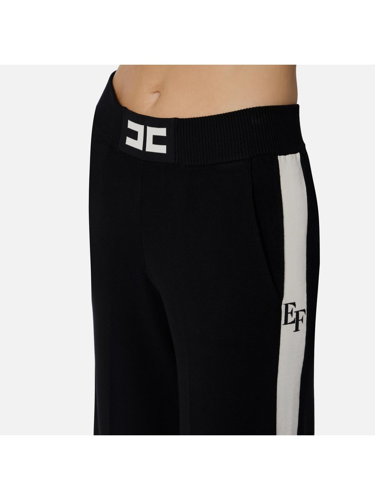 Pantalone ELISABETTA FRANCHI in viscosa. Si distinguono per il logo centrale in vita e per le bande laterali rifinite in viscosa lucida che creano eleganti contrasti di texture e colore coi loghi laterali.