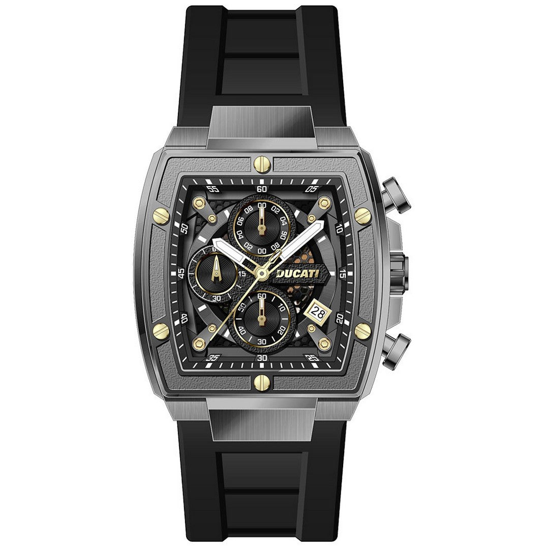Orologio Ducati Corse DTWGO0001302 movimento al quarzo funzione cronografo, cassa tonneau con trattamento pvd e dettagli colore oro rosa dimensioni 40 x 47 mm.