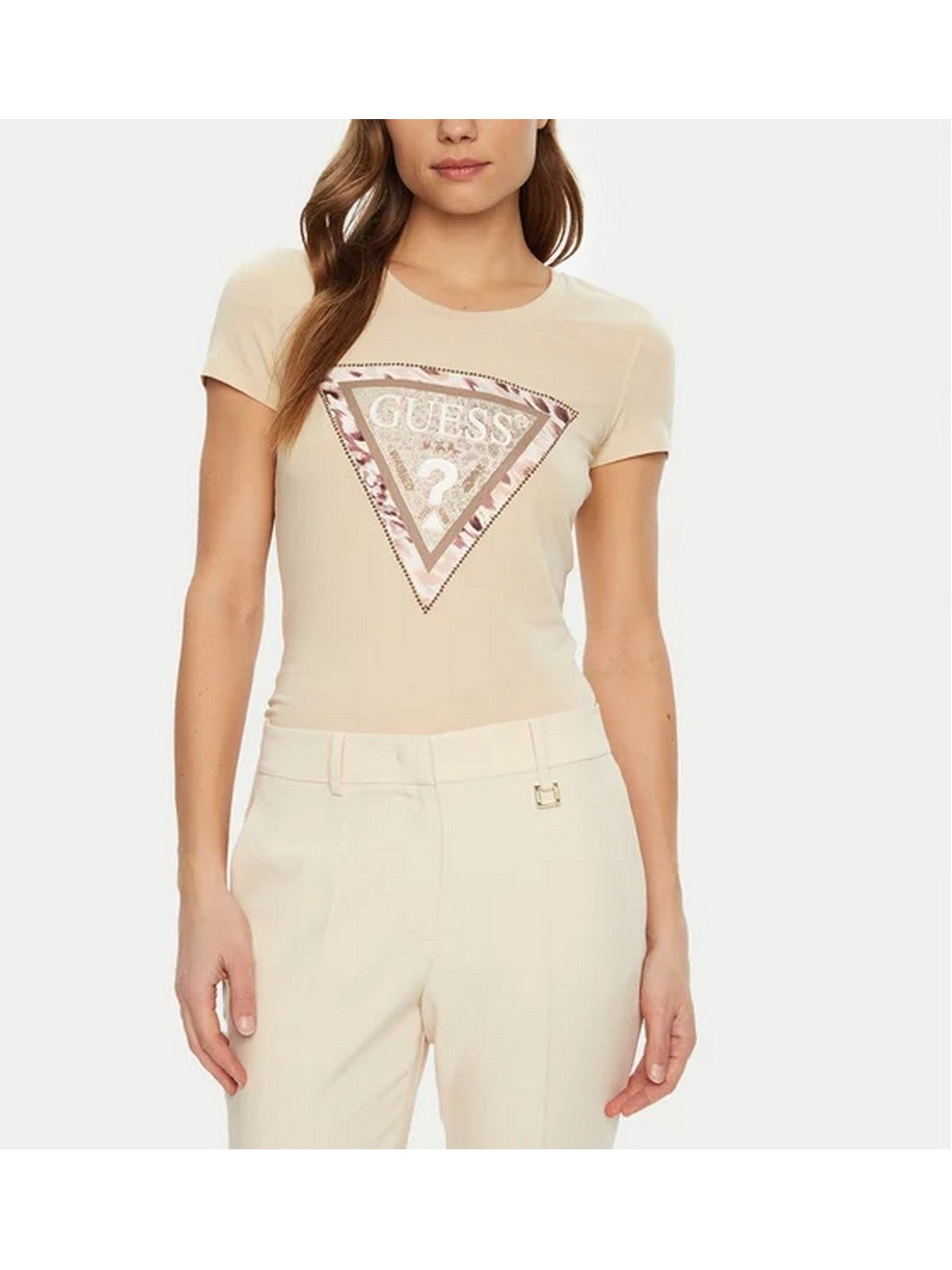 GUESS T-shirt Donna SS CN CHEETA LOGO TRIANGLE TEE W5RI22 J1314 G1M5 PEARL OYSTER