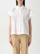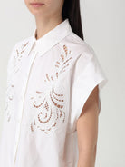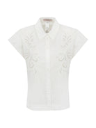 Camicia TWINSET in popeline di cotone leggero con finissaggio naturale impreziosita da ricamo piazzato a filo in tinta a intaglio