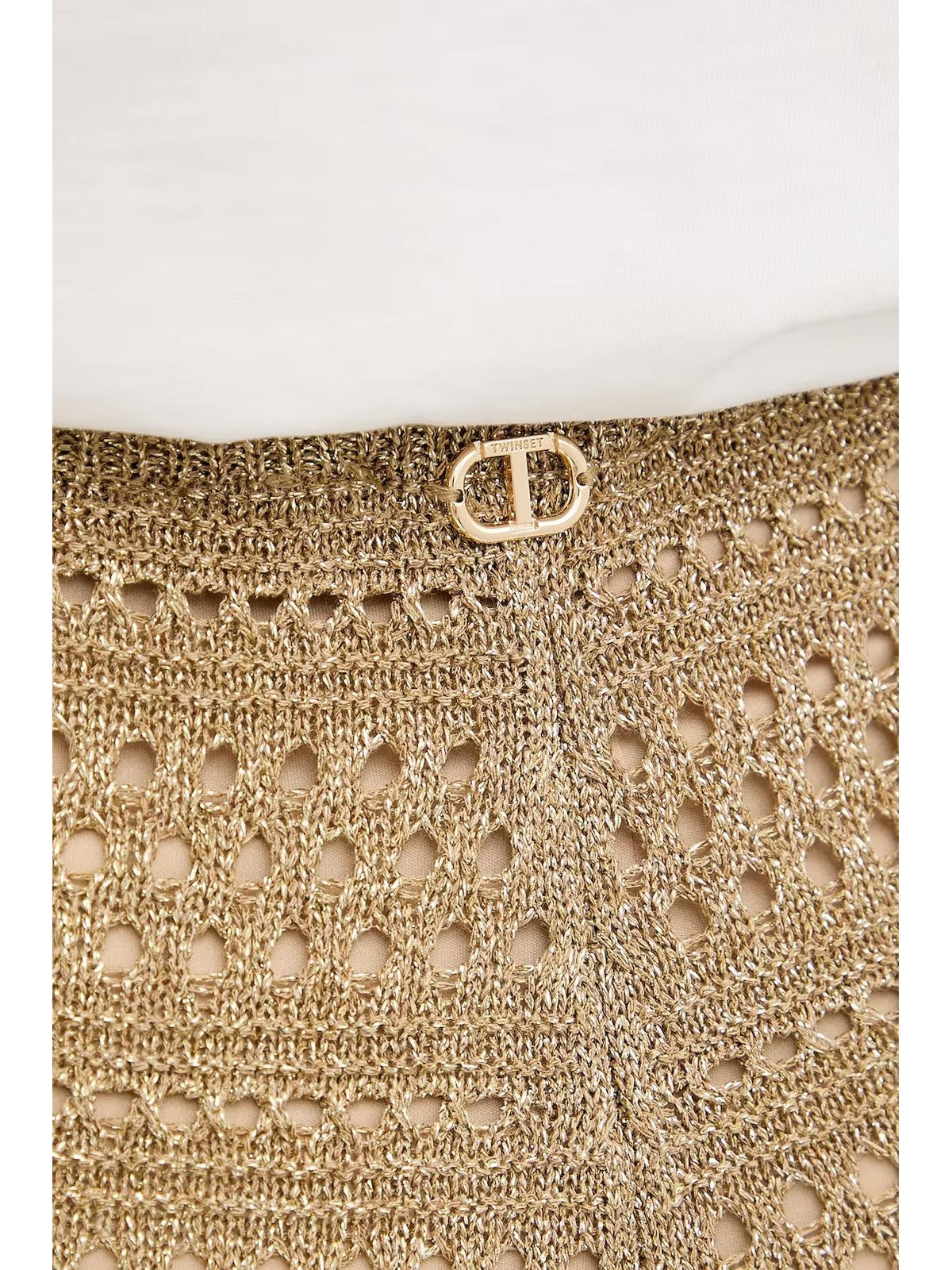 Pantaloni in maglia TWINSET di misto viscosa lurex con lavorazione punzonata alternata a punti links con effetto righe orizzontali.