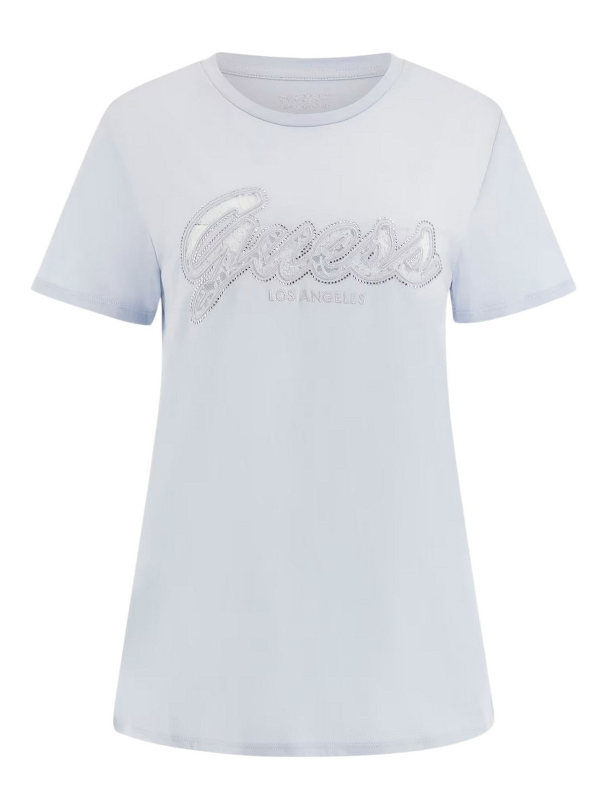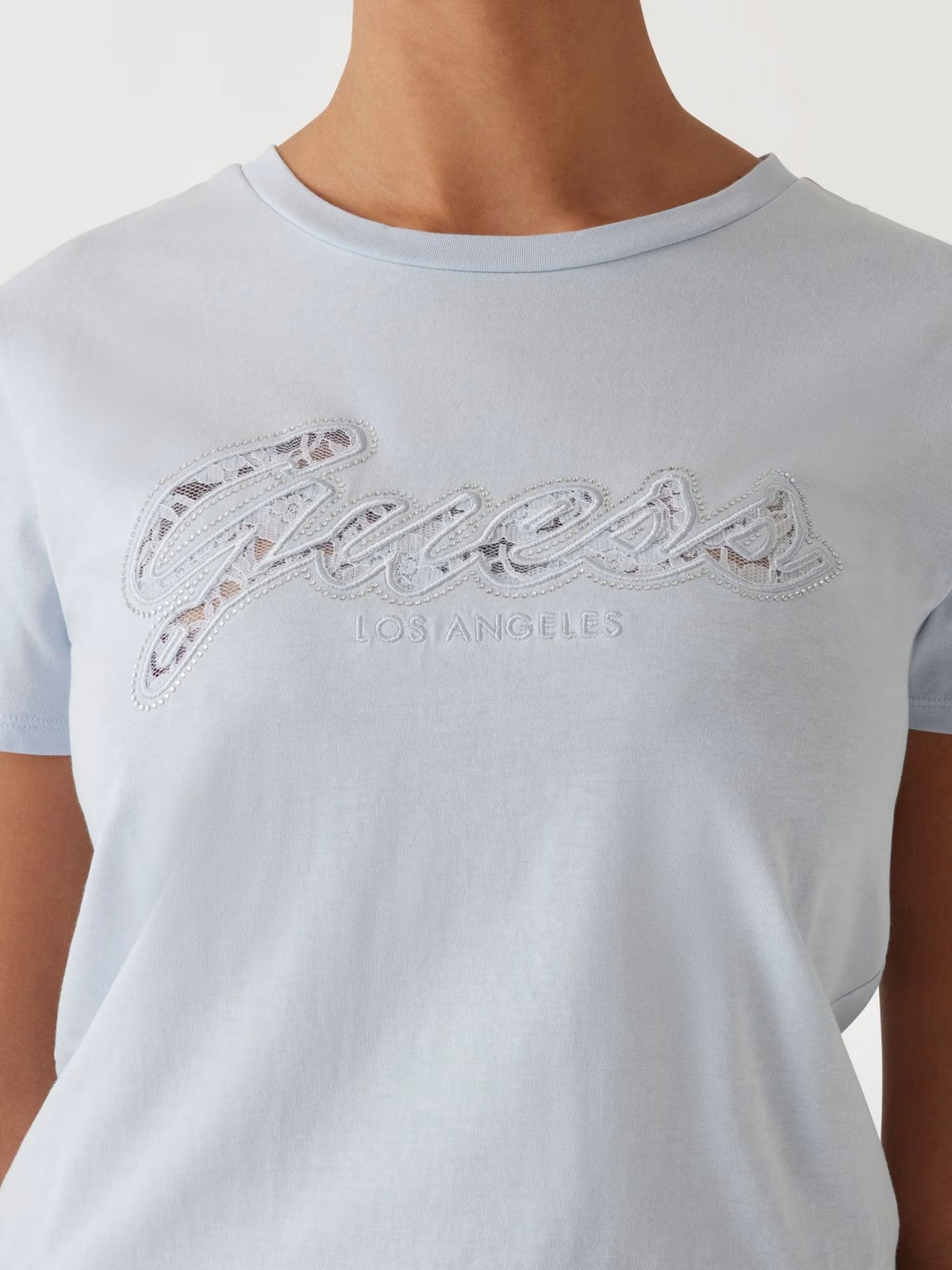 GUESS T-shirt Donna SS SCRIPT LACE LOGO EASY TEE W5RI08 K9RM1 G7S1 Blu