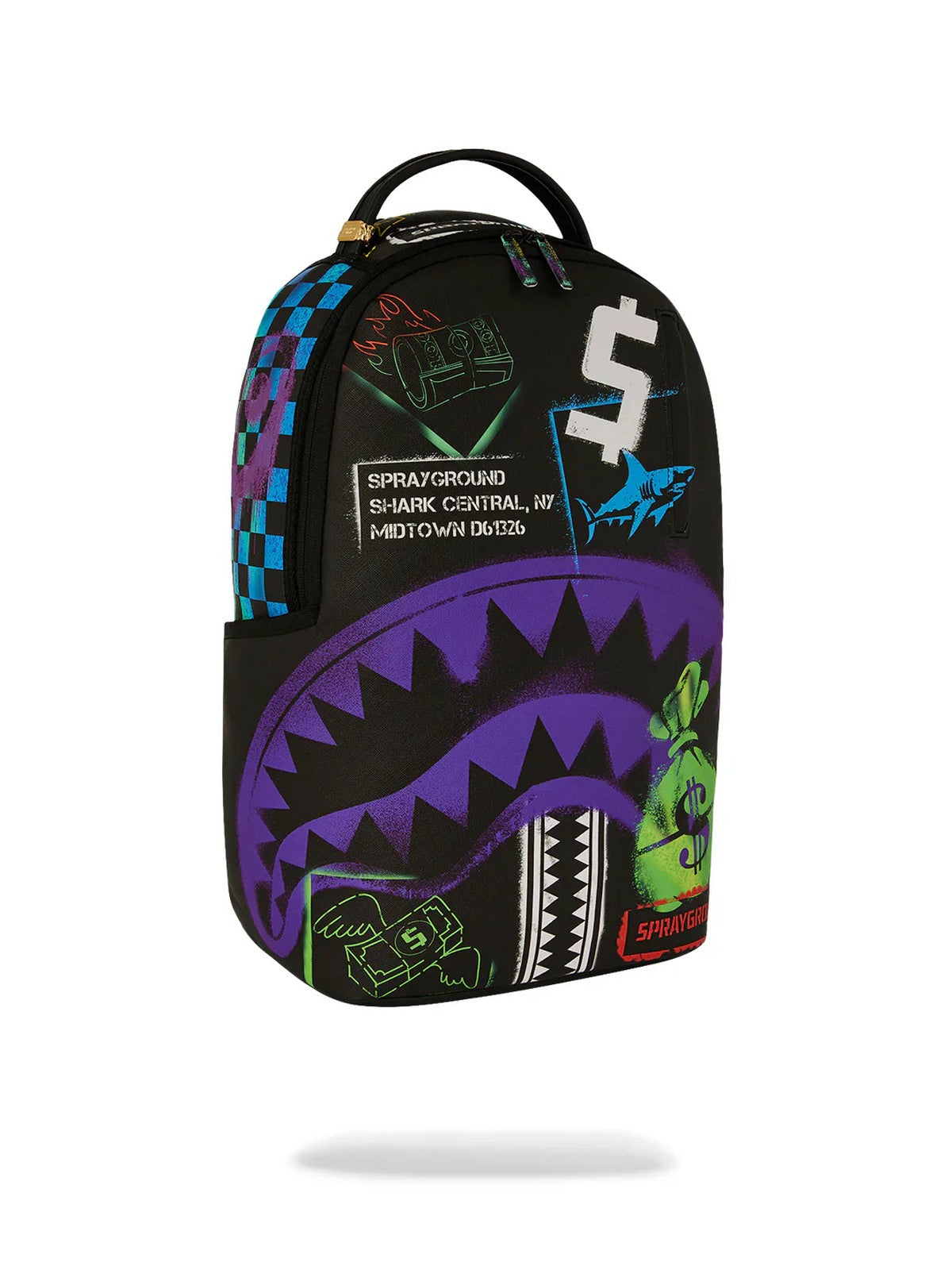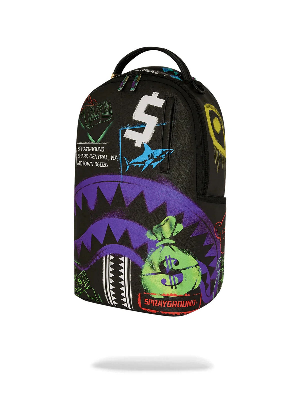 SPRAYGROUND Zaino Uomo SHARK CENTRAL STENCILS- BLACK DLXSV BACKPACK 910B7620NSZ Nero