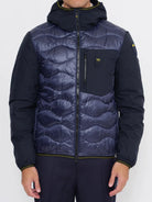 Piumino BLAUER monocromatico in neoprene leggero e liscio sulle maniche e in nylon lucido impunturato ad onde sul corpo. Imbottitura mista per avere caldo anche in condizioni meteo avverse.