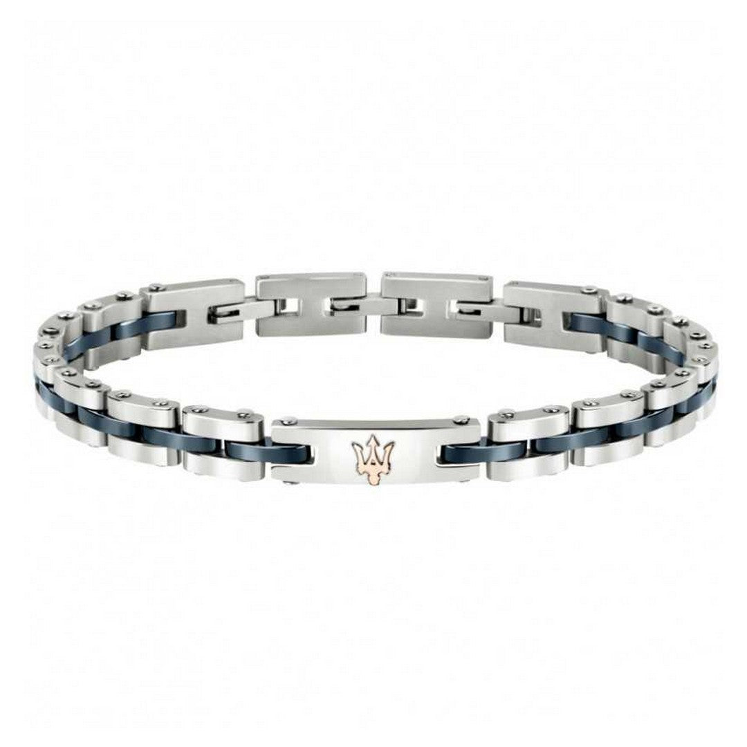 Braccialetto da uomo Maserati realizzato in acciaio anallergico con inserti in ceramica blu.