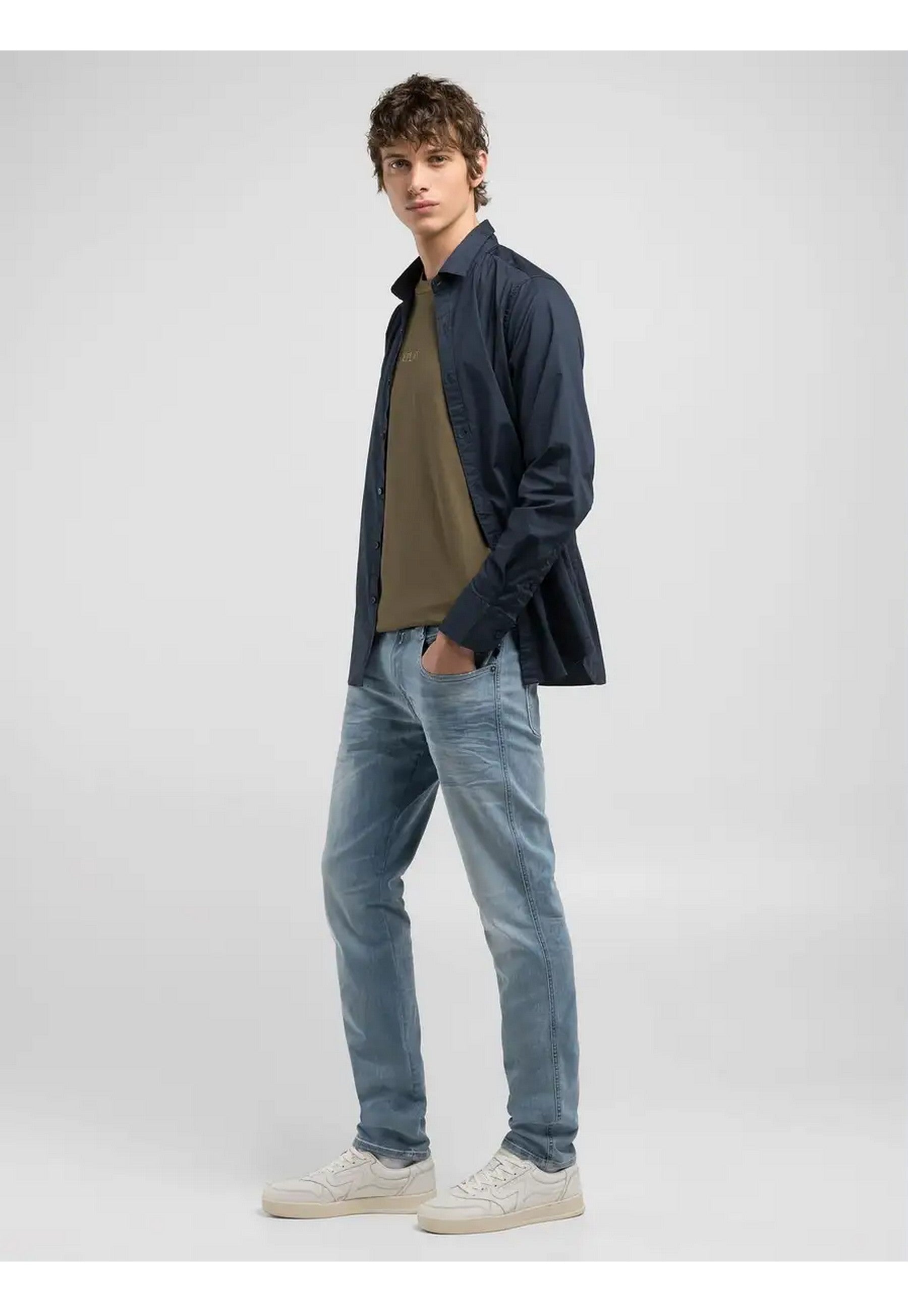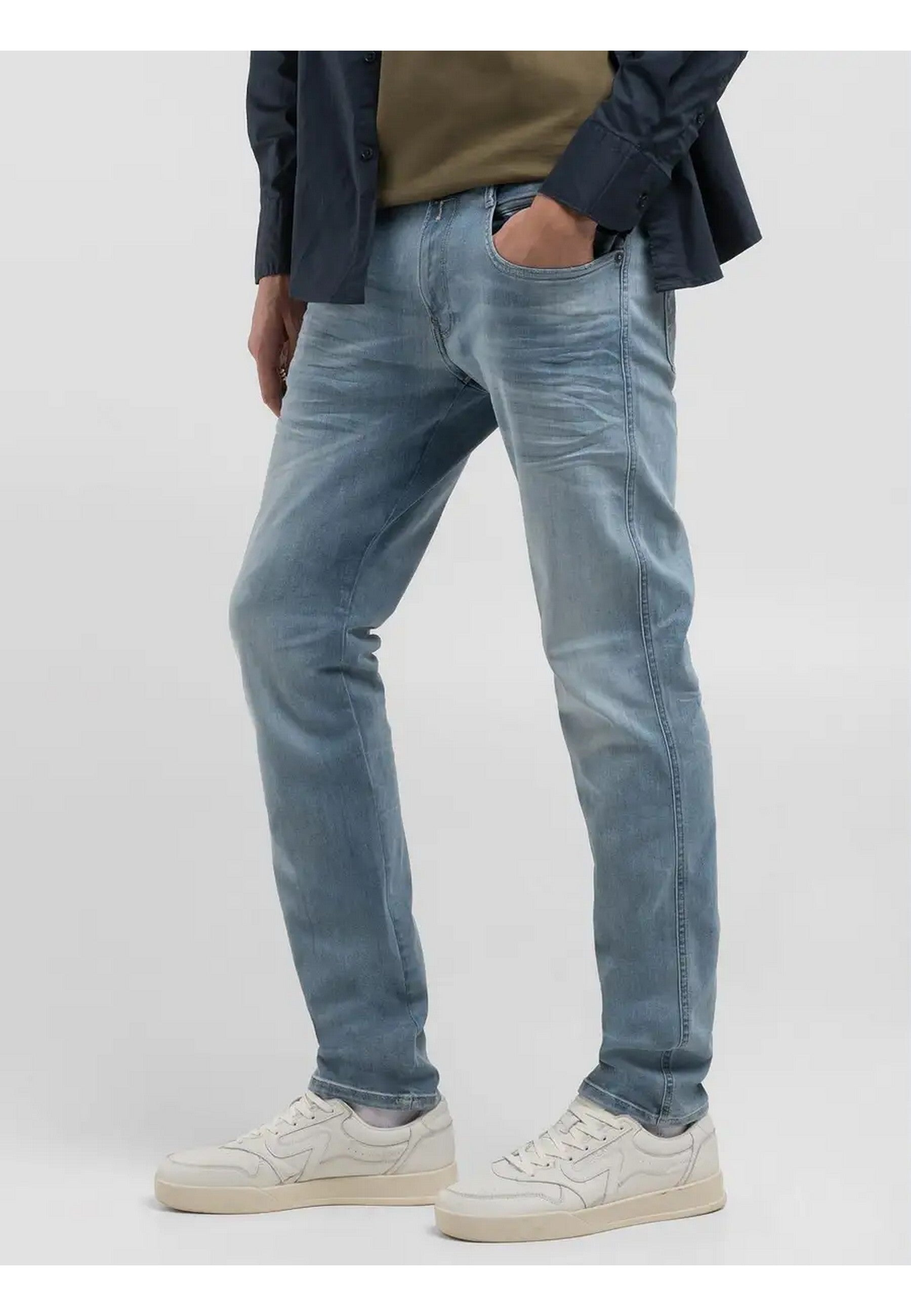 REPLAY jeans made of Hyperflex recycled stretch cotton blend denim, ANBASS model, Slim fit, Regular waist, Straight leg, Button and zip fastening, Five pockets