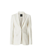 Giacca blazer monopetto dalla linea sfiancata in tessuto tecnico di viscosa stretch lavorata a punto stoffa. Il capo è rifinito da dettagli dal gusto sartoriale, come le pinces che accompagnano ed enfatizzano la figura, e da elementi classici come il collo a revers e le tasche con pattina. Abbina il blazer con il pantalone nello stesso tessuto per un effetto tailleur, oppure indossa una camicia per un look formale, ma non troppo.