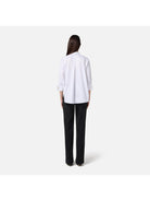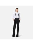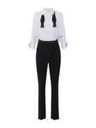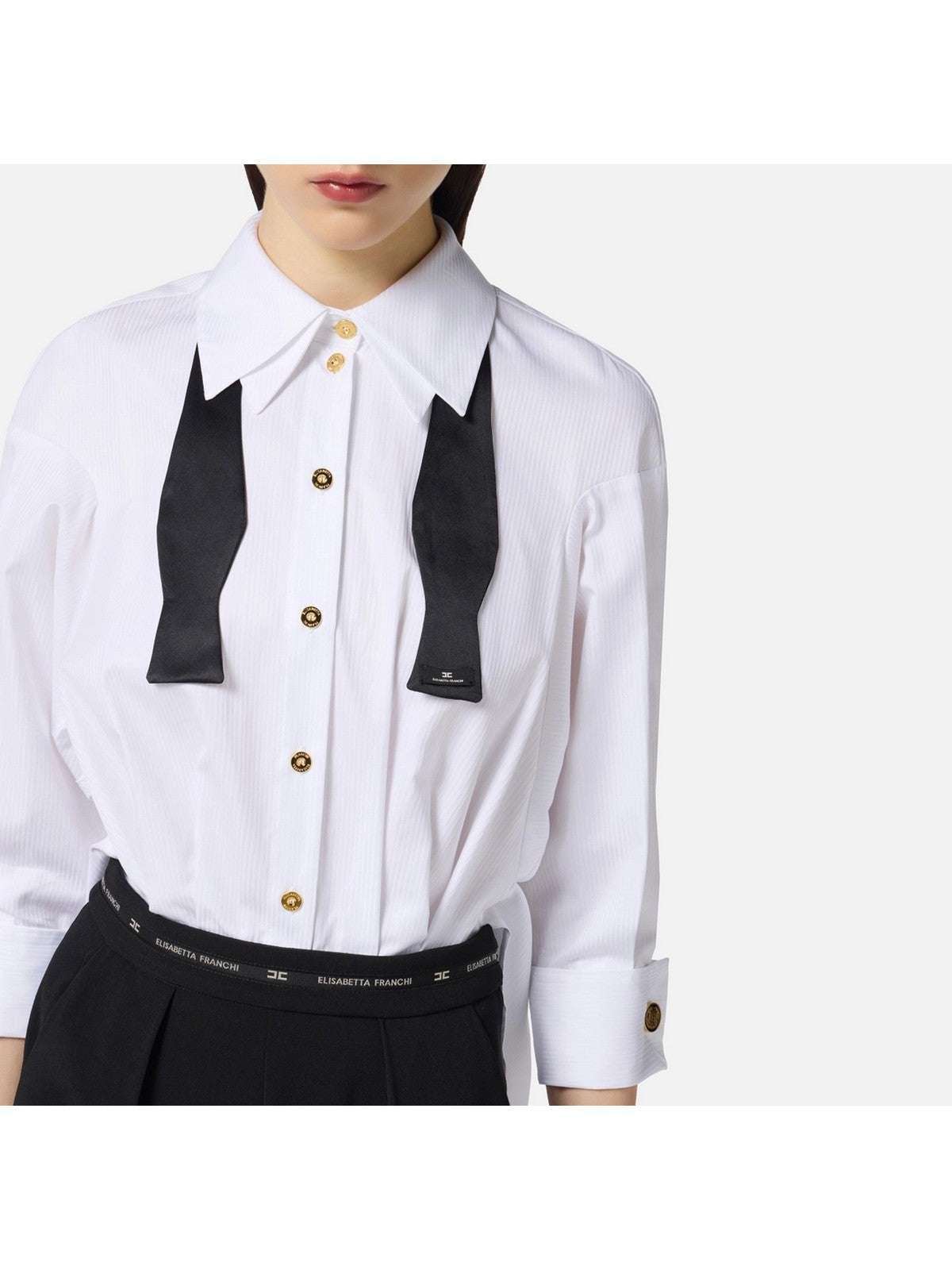 ELISABETTA FRANCHI jumpsuit with a matching striped cotton poplin shirt and a longer hem at the back that extends out from the trousers. Lightweight crepe trousers.