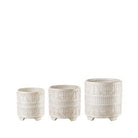 Set composto da 3 Cache-pot in ceramica con effetto anticato e decoro geometrico. Le diverse dimensioni permettono di creare un angolo green o impreziosire un ambiente con un plant decor armonioso.