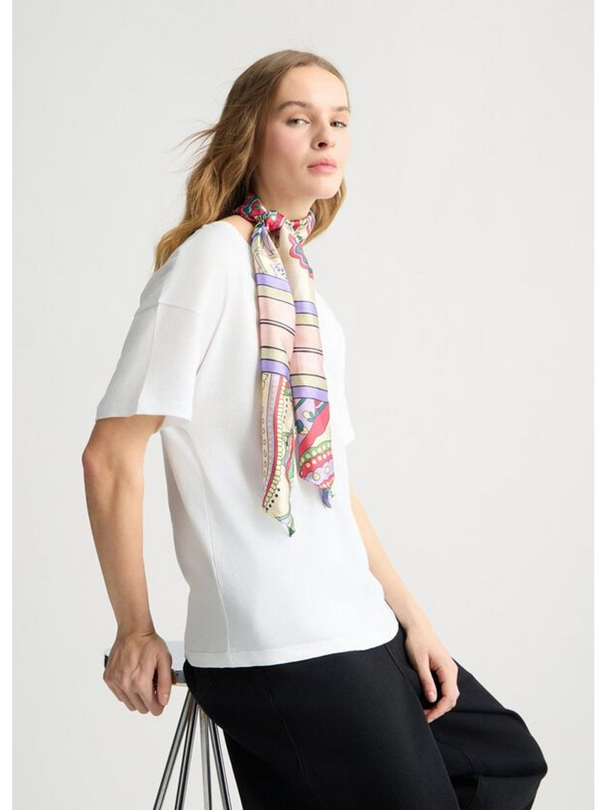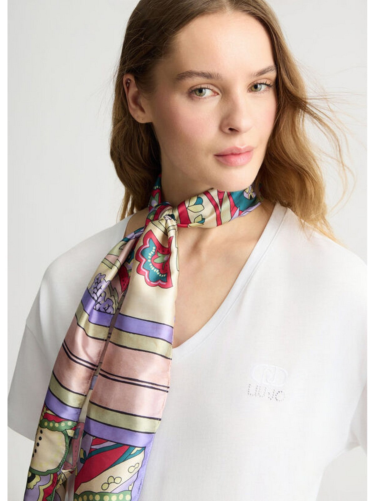 T-shirt femme Liu Jo - T-shirt femme avec foulard à motifs - Blanc