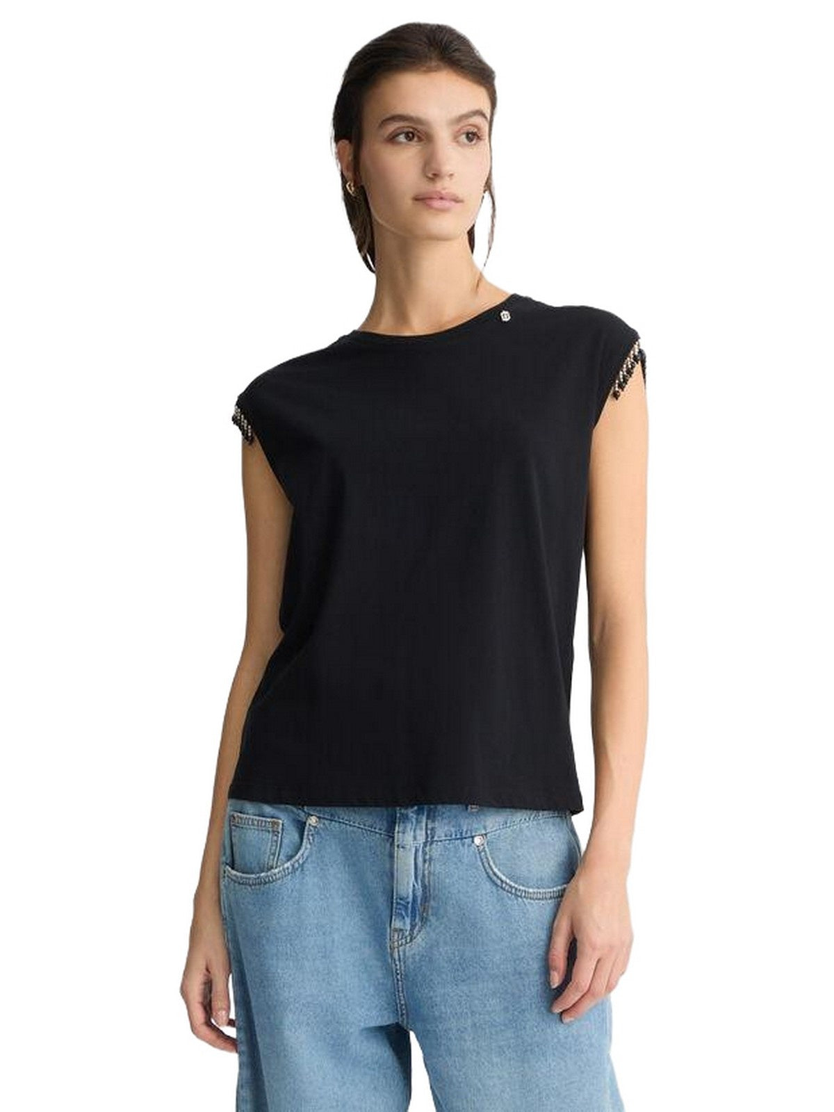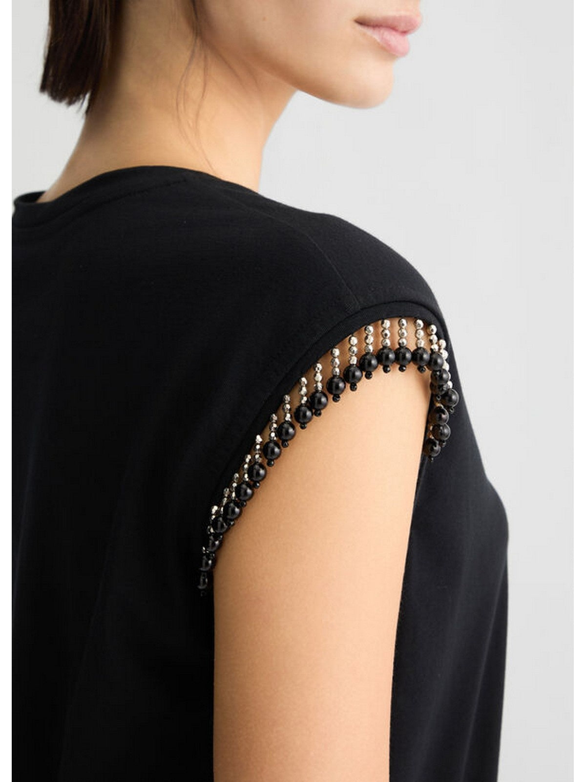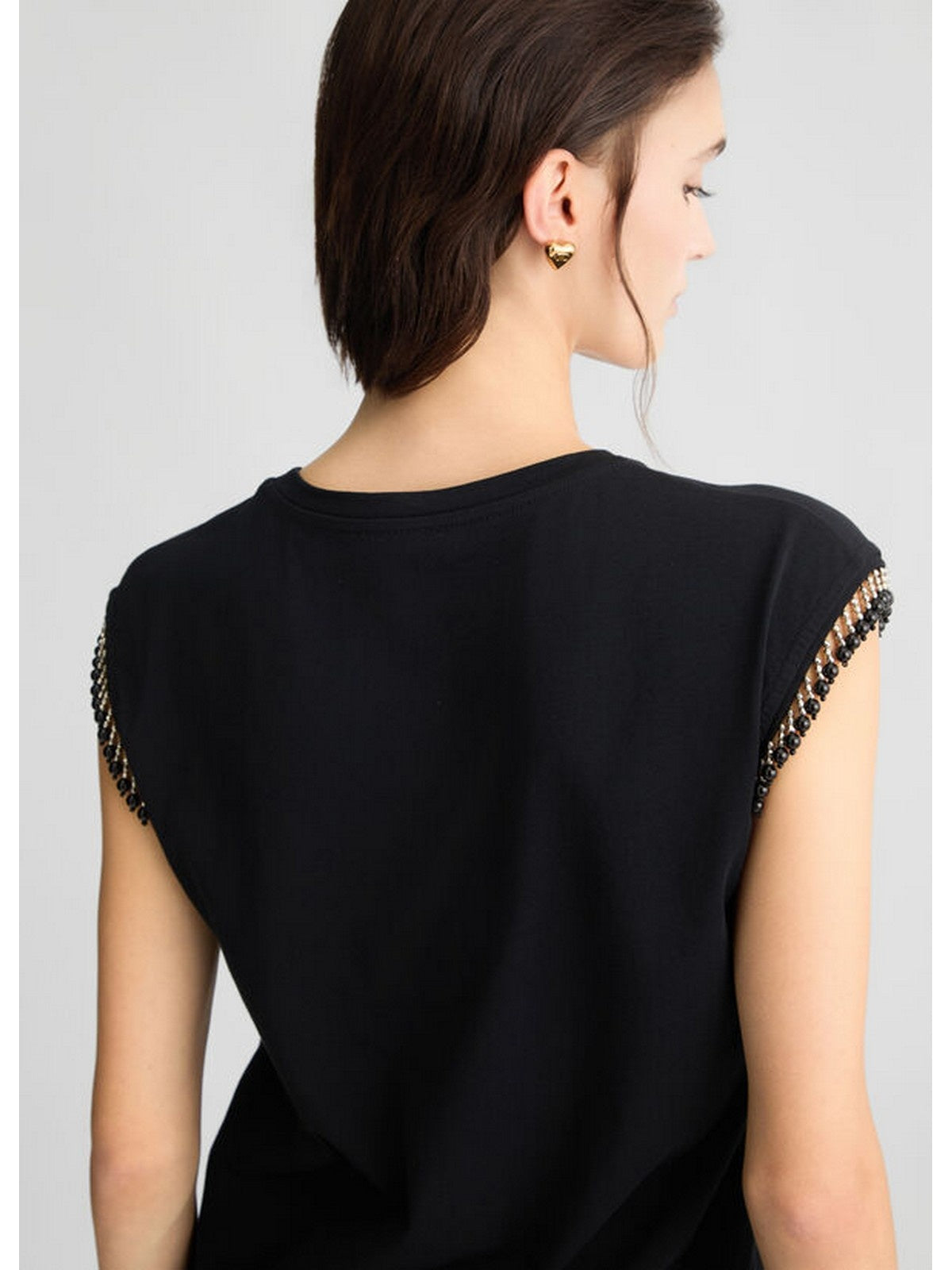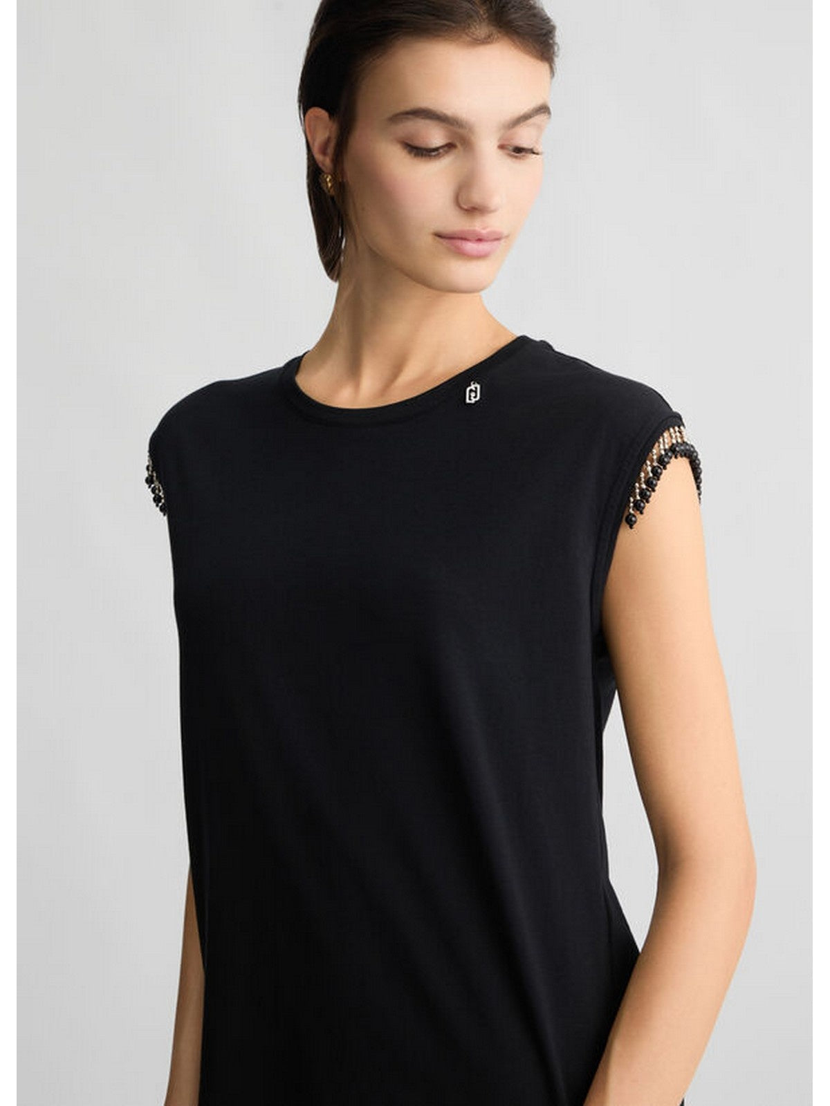 T-shirt femme Liu Jo - T-shirt en jersey avec perles - Noir