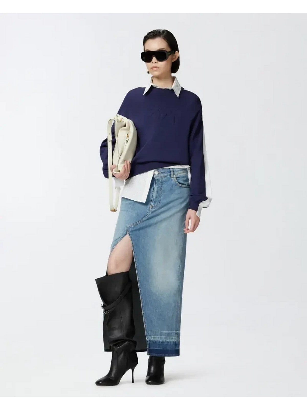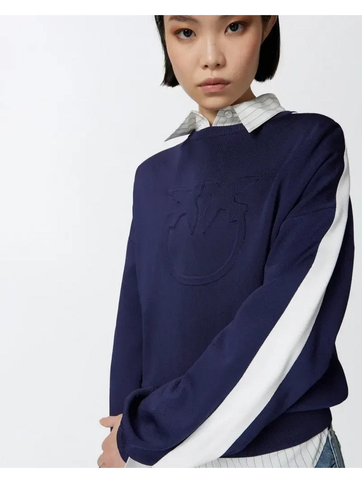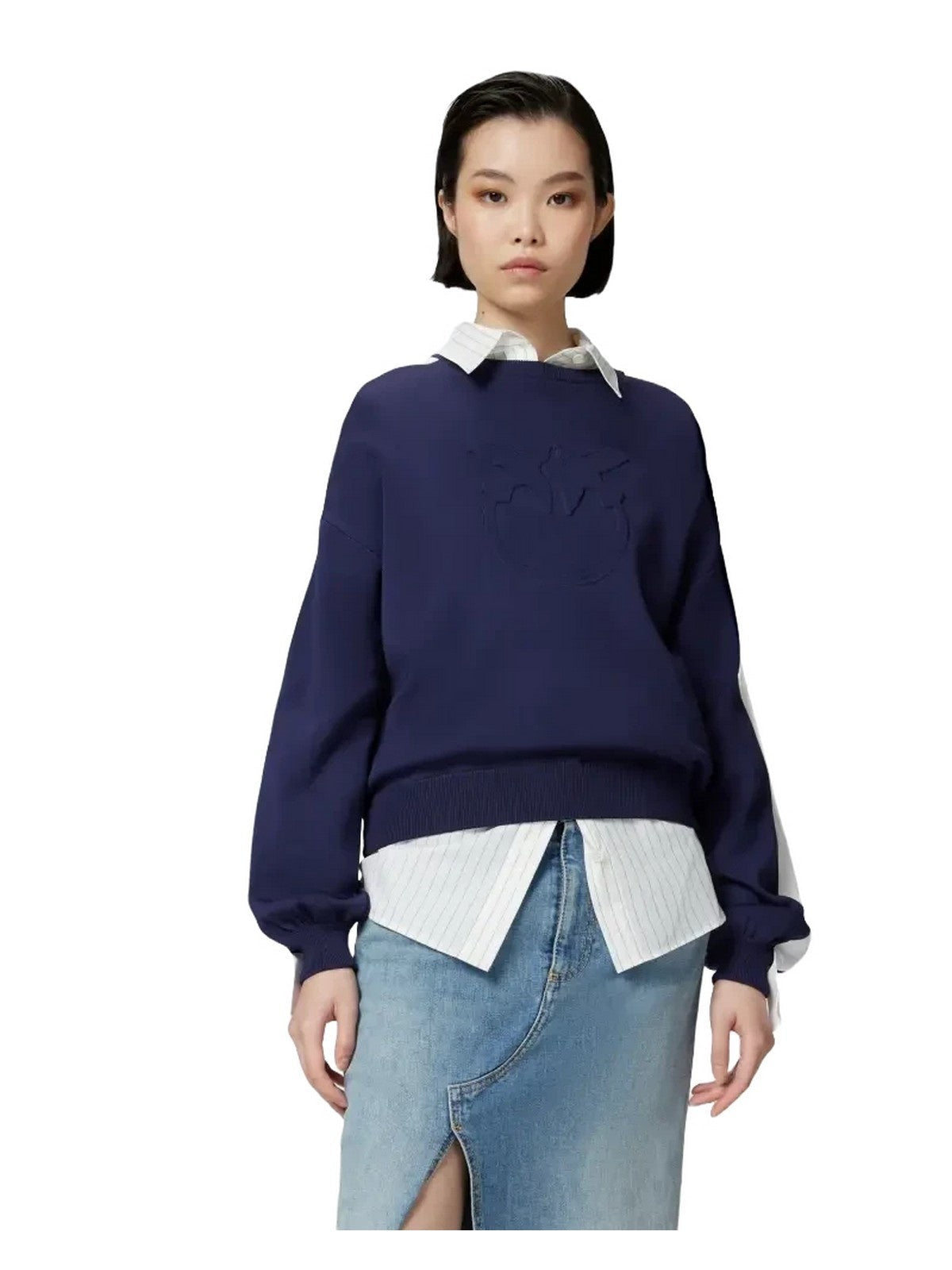 Pinko Women's Hoodies - Crewneck Sweatshirt with Wide Sleeves and Embossed Logo - Blue