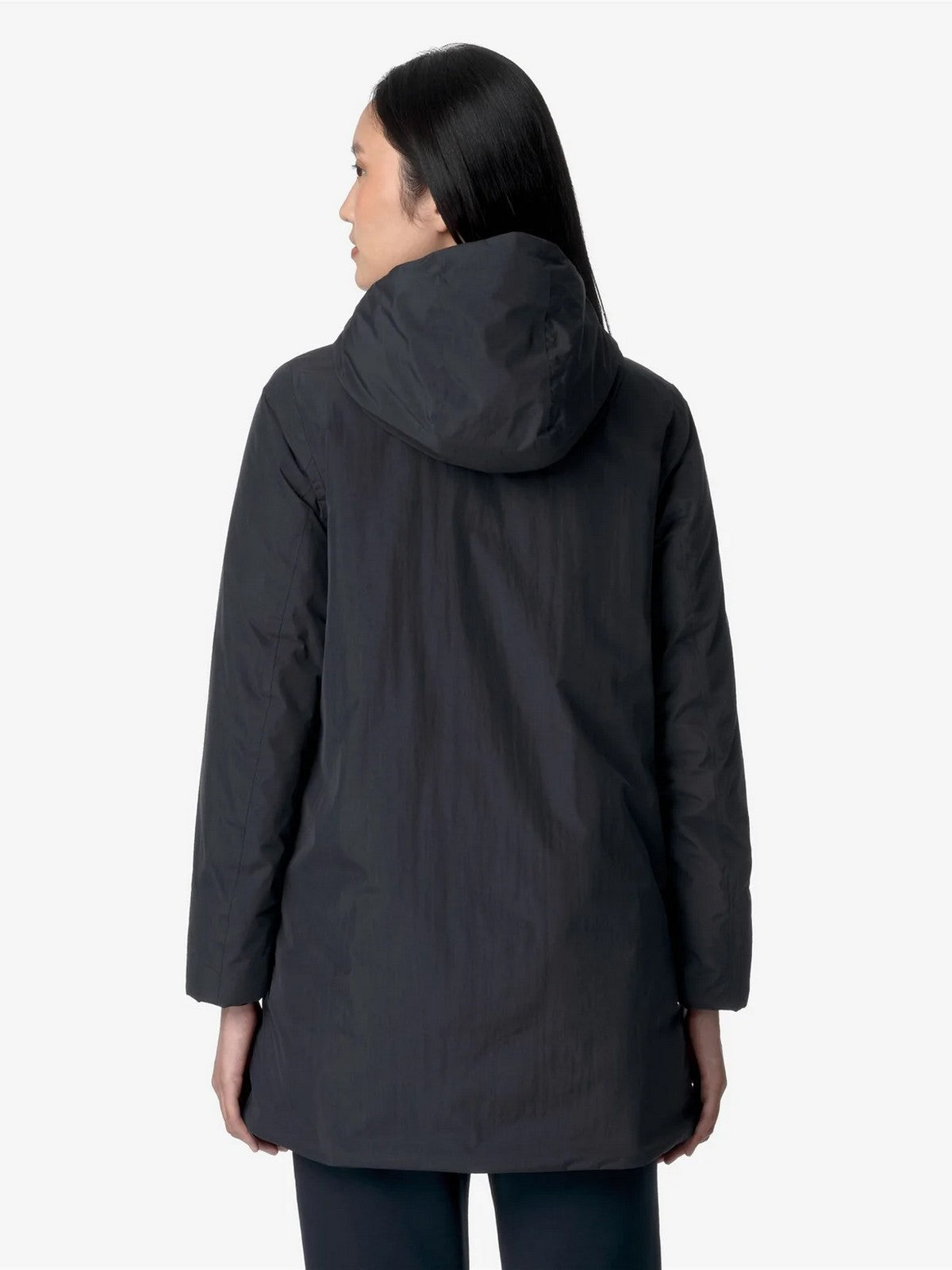 Giubbino K-WAY Sophie di media lunghezza che si caratterizza per la linea slim, realizzato in un tessuto morbido e performante con la classica fodera in tessuto soffice.