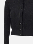Cardigan MAXMARA in filato di lana e seta a coste, impreziosito da un ricamo di micro paillette.
