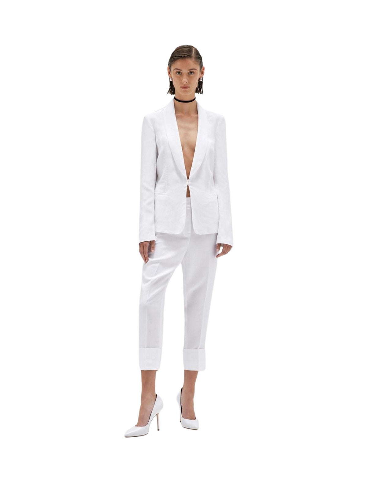 CIGARETTE FIT TO MAKE YOU FEEL COMFORTABLE AND CHIC ON ANY OCCASION: TROUSERS IN ENVERS SATIN LINEN BLEND WITH WAISTBAND LOOPS, ZIP AND BUTTON CLOSURE, FRENCH POCKETS, BACK PIPING, SEWN CUFF AT THE BOTTOM, IRONED PLEAT. CREATE THE PERFECT SUIT WITH YOUR FAVORITE MATCHING JACKET. COMPOSITION: 77% VISCOSE 23% LINEN