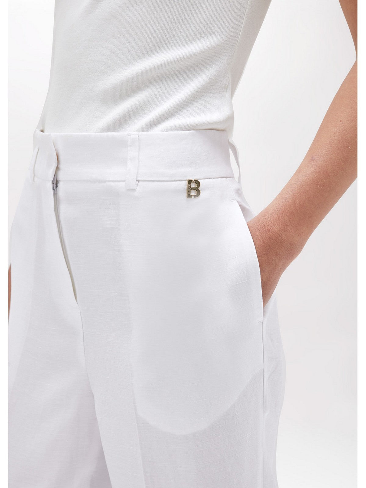 Blugirl Women's Pants - Linen Blend Cigarette Pants - White