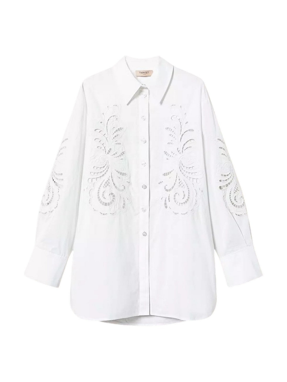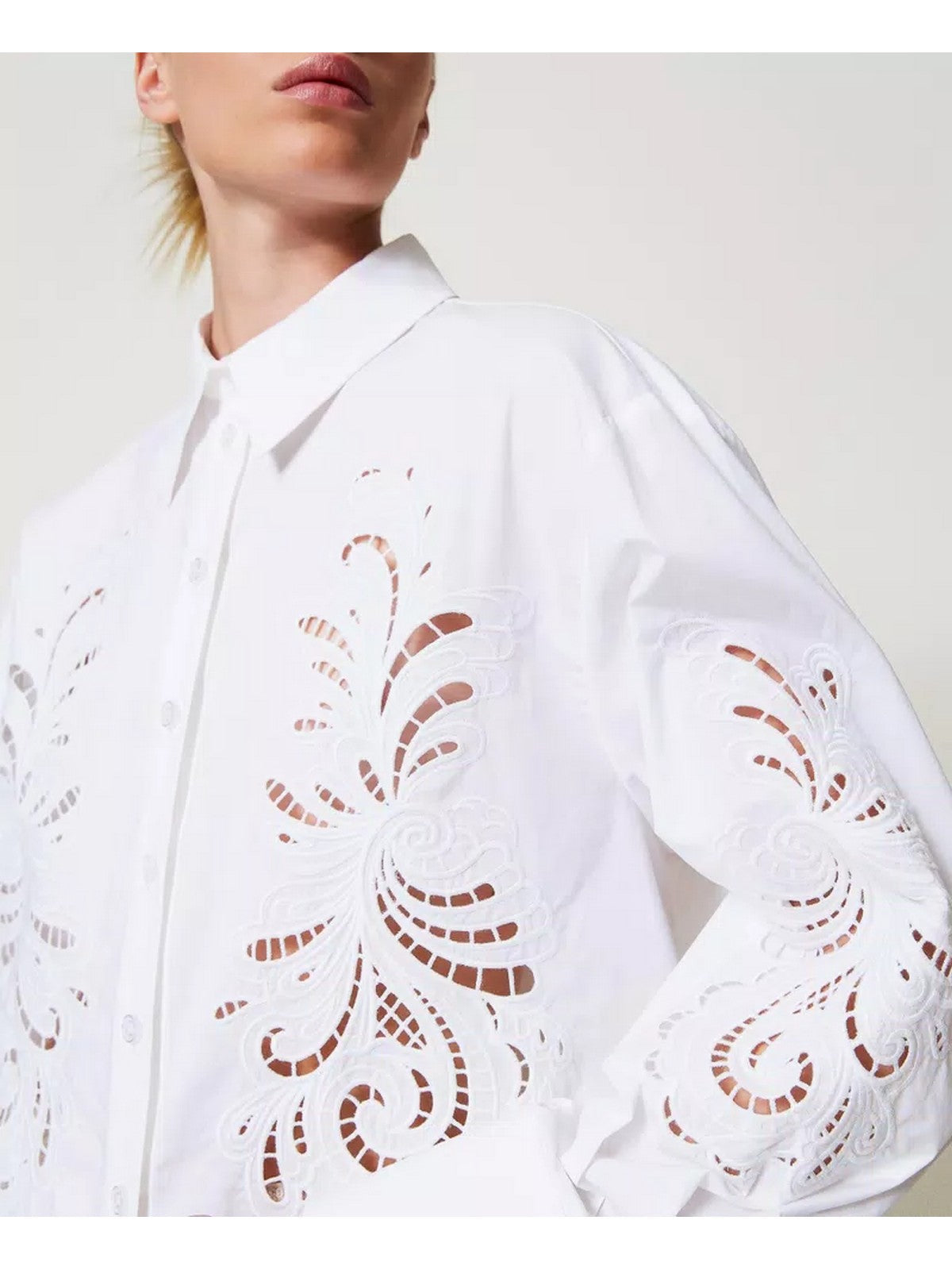 Camicia TWINSET in popeline di cotone con finissaggio naturale impreziosita da ricamo piazzato a filo in tinta a intaglio