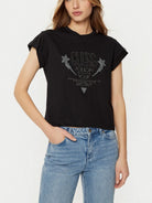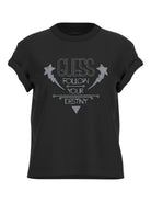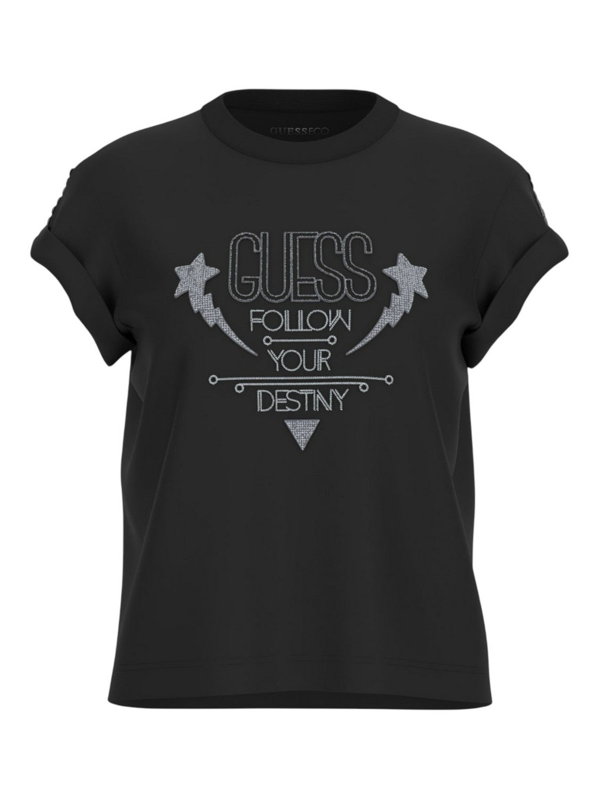 GUESS T-shirt Donna SS CN SLEEVES STRASS DETAIL W5RI06 I3Z14 JBLK Nero