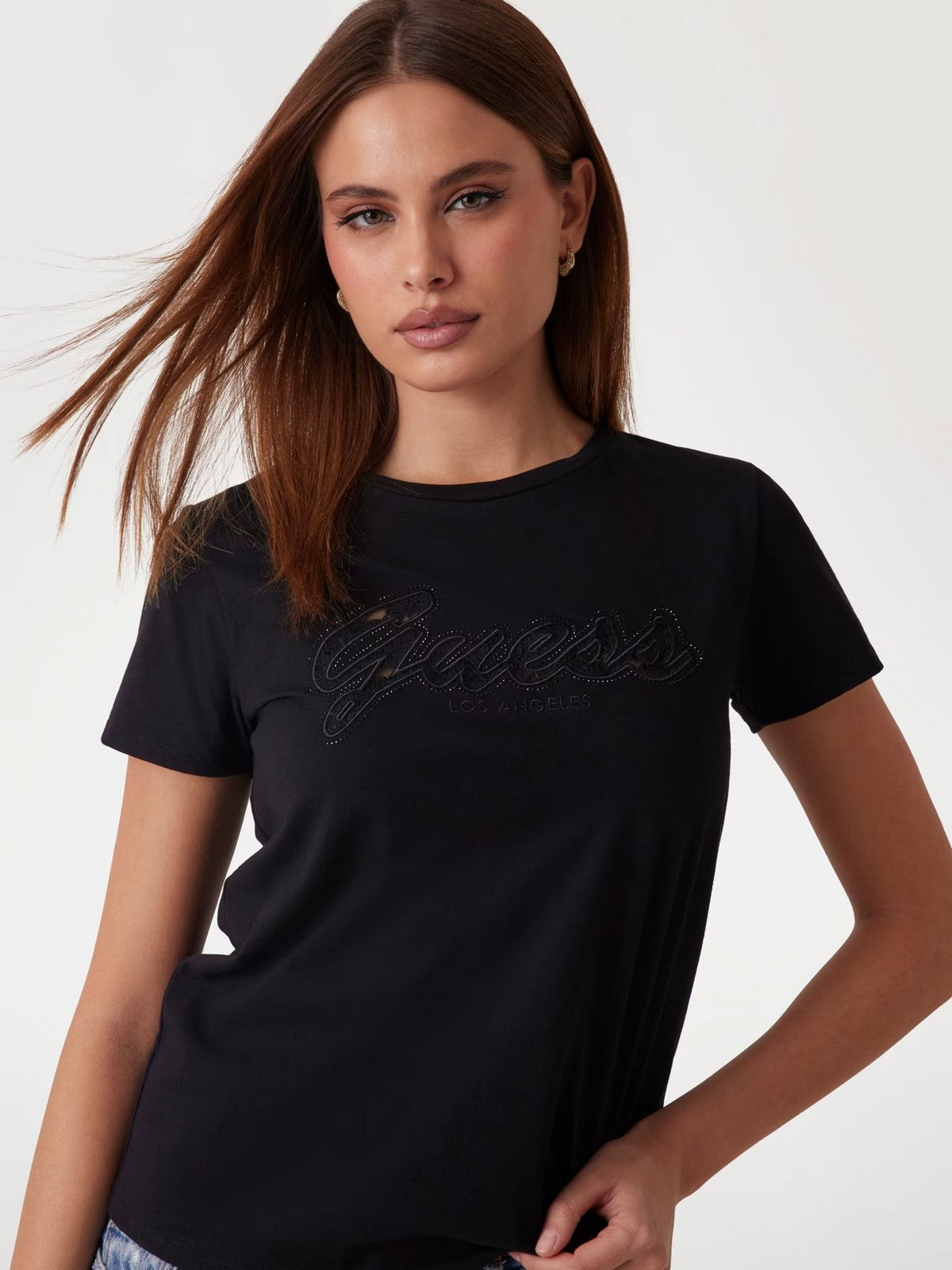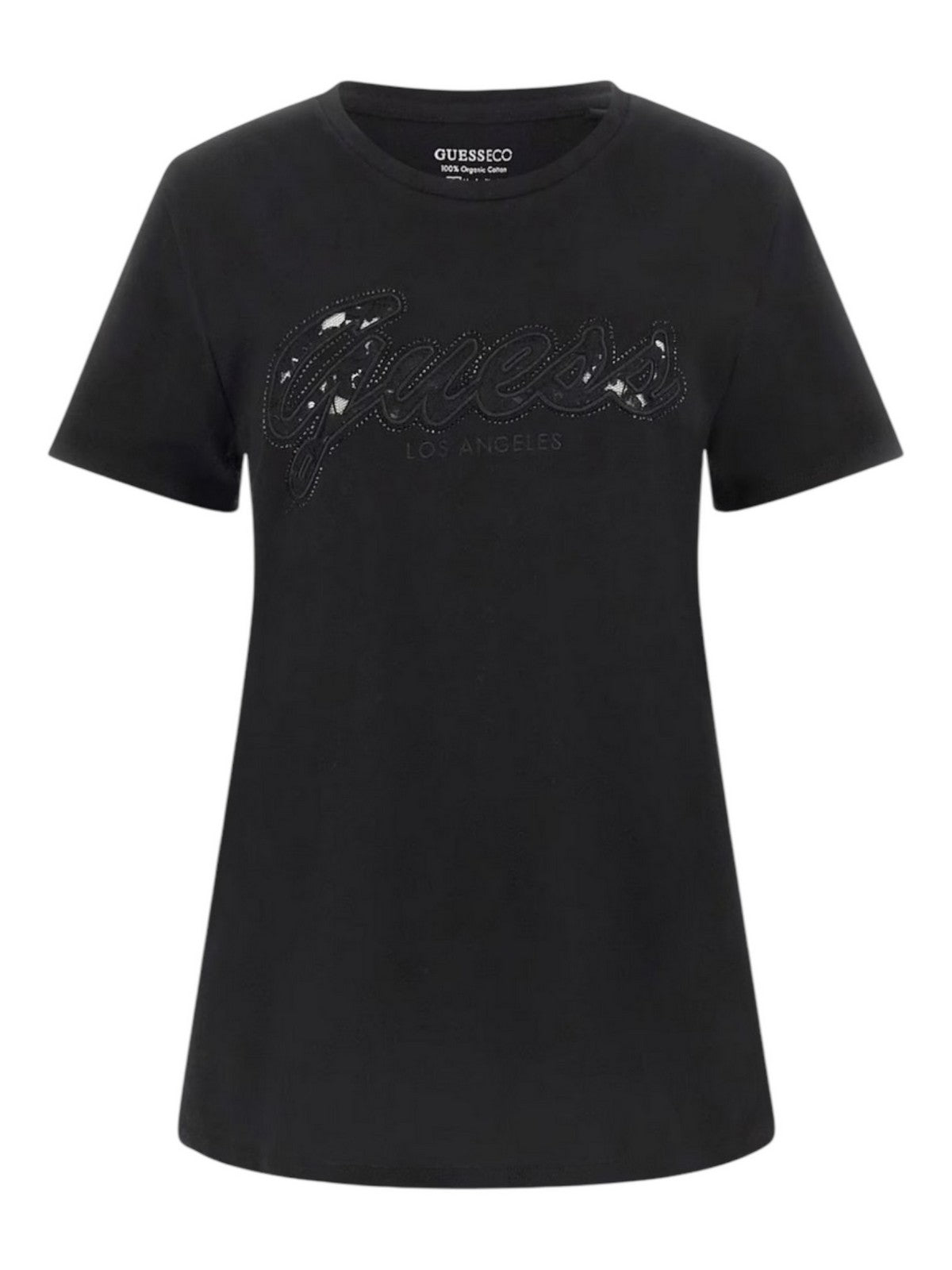 GUESS T-shirt Donna SS SCRIPT LACE LOGO EASY TEE W5RI08 K9RM1 JBLK Nero