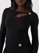 GUESS Top Donna LS ZAMA CUT OUT NECK TOP W5RP12 KAQL2 JBLK Nero