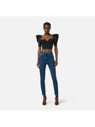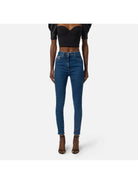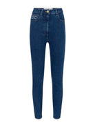 Jeans ELISABETTA FRANCHI in denim personalizzati con logo. Dalla vestibilità aderente, sono impreziositi dal bottone in metallo dorato sulla vita.