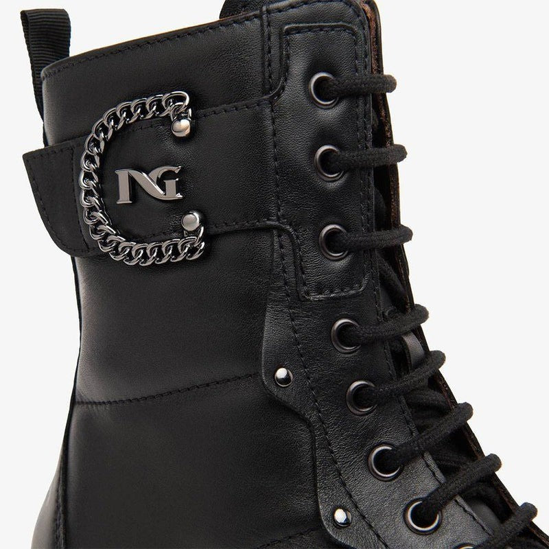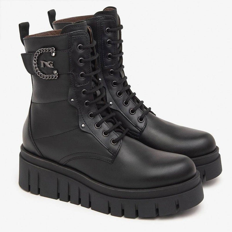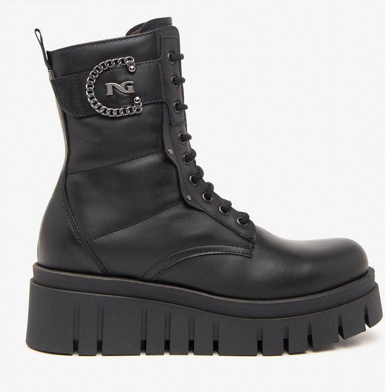 La morbida fodera interna in pelle e tessuto assicura traspirabilità e benessere per tutto il giorno. Il logo NG tono su tono applicato lateralmente completa il design con un tocco sobrio e riconoscibile. Questo stivaletto è ideale per chi ama affermare il proprio stile con carattere, senza rinunciare alla qualità artigianale del Made in Italy.