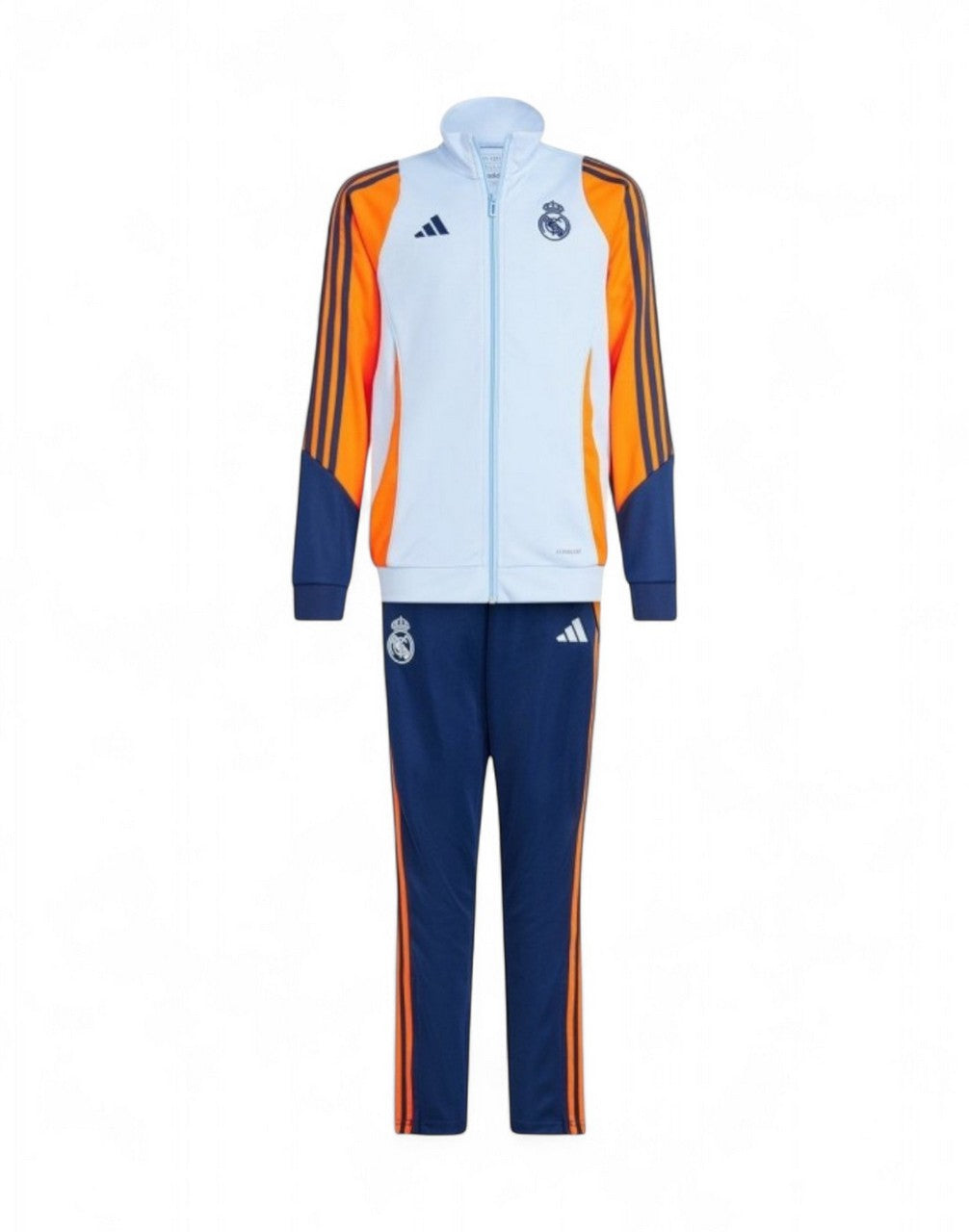 La tuta ufficiale da allenamento del Real Madrid ,pensata per i giovani tifosi che desiderano allenarsi o rilassarsi con stile e comfort.