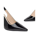 Confectionnées en cuir verni de haute qualité, ces escarpins allient élégance et confort. Leur talon haut en spirale apporte une touche d'élégance tout en garantissant une stabilité optimale. La bride arrière élastique épouse délicatement le talon, assurant un ajustement pratique et confortable.
