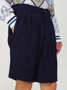 Ce bermuda Missoni allie l'élégance d'une coupe ajustée à la légèreté de matières haut de gamme. Le mélange de coton et de viscose, orné d'un motif zigzag, lui confère une sophistication contemporaine, parfaite pour un look estival frais et sophistiqué.