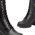 Tige en cuir noir de haute qualité, souple et résistant, avec coutures apparentes qui mettent en valeur la structure.