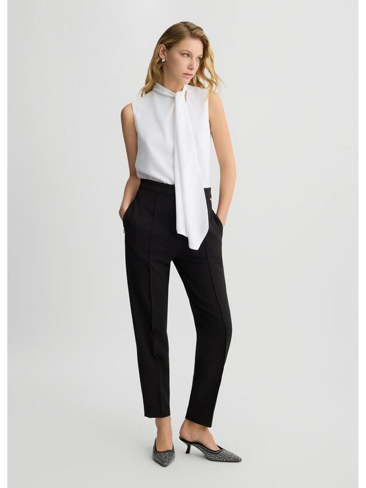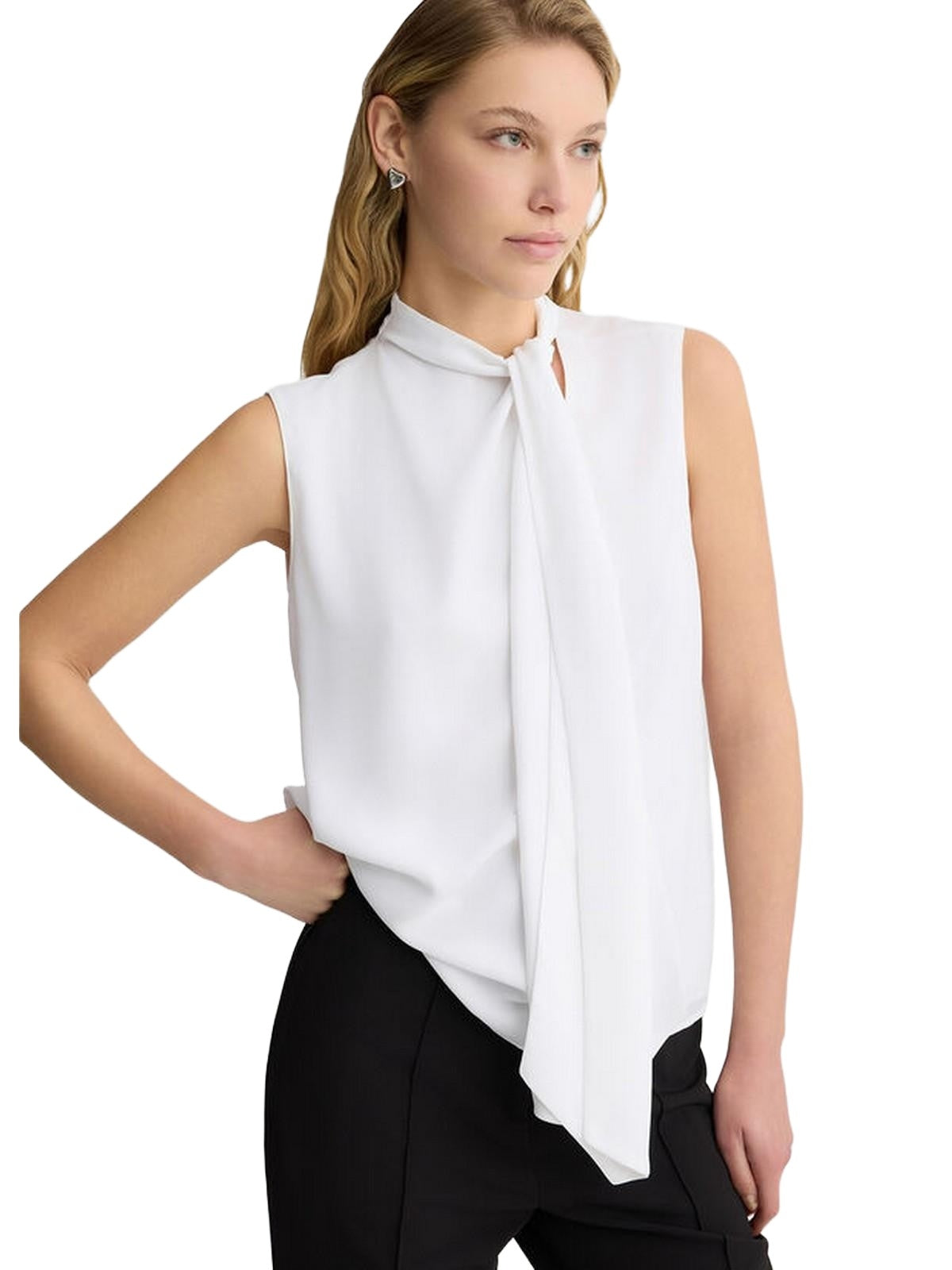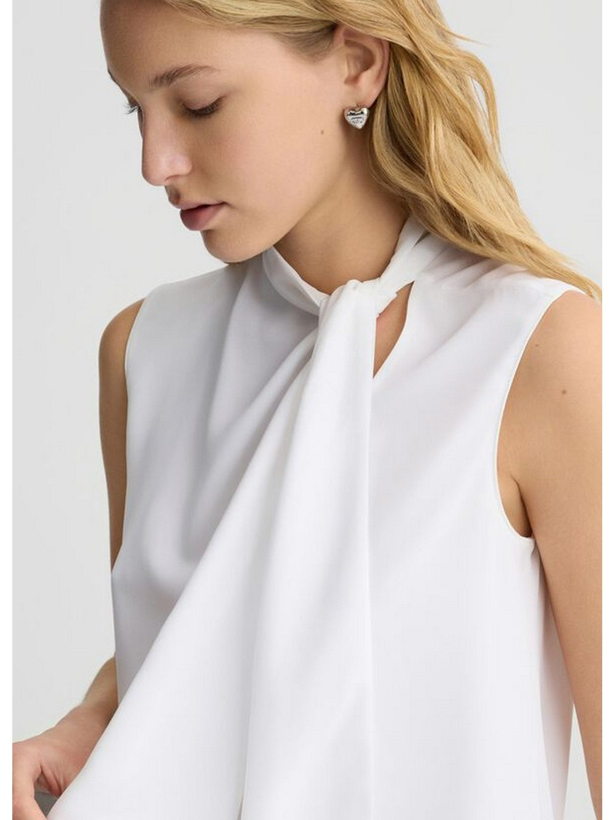Aggiungi una nota sofisticata ai tuoi look più formali con questo elegante top in georgette. Il modello scivola fluido sulla tua collezione di gonne o pantaloni sartoriali, arricchito da un vezzoso fiocco in tono colore. Scegli il colore più adatto a te e dai voce al tuo glam!