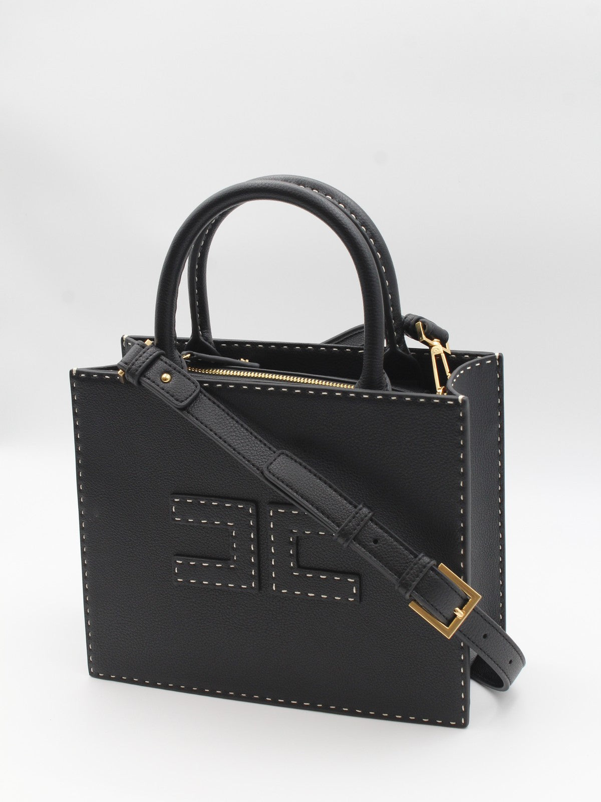 Borsa mini tote Elisabetta Franchi, in effetto pelle bottalata e impunture a contrasto.