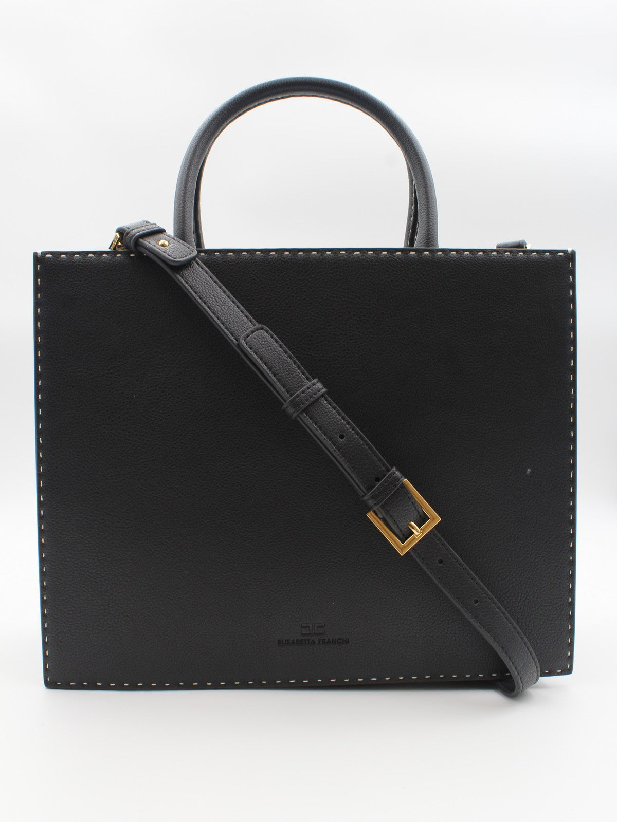 Borsa tote Elisabetta Franchi, in effetto pelle bottalata e impunture a contrasto.