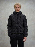 Piumino BLAUER con cappuccio fisso e profilo dall'aspetto aderente e increspato. Cuciture nastrate ad angoli che dona un tocco innovativo e dinamico.