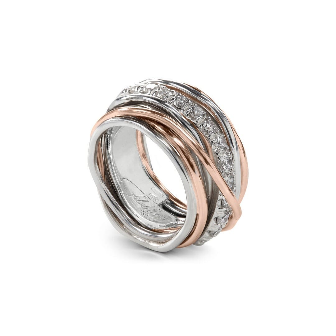 Anello Filodellavita Carato Collection, 13 Fili in Oro Rosa 9kt, Argento .950 al Palladio e 13 Diamanti Bianchi 1.00 ct tot.