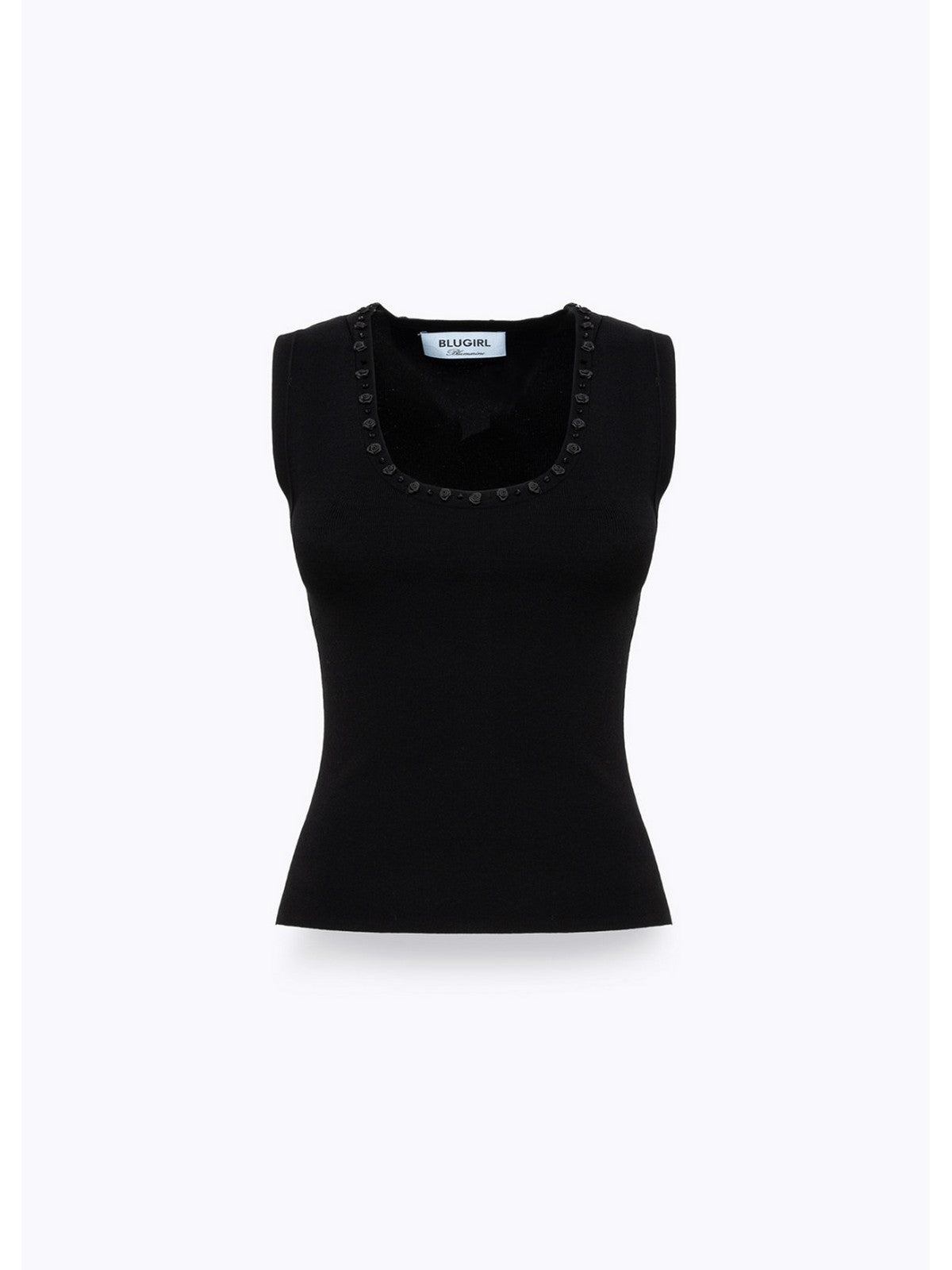 Cardigan Donna Blugirl - Cardigan E Top Con Ricamo Rose E Corallini - Nero
