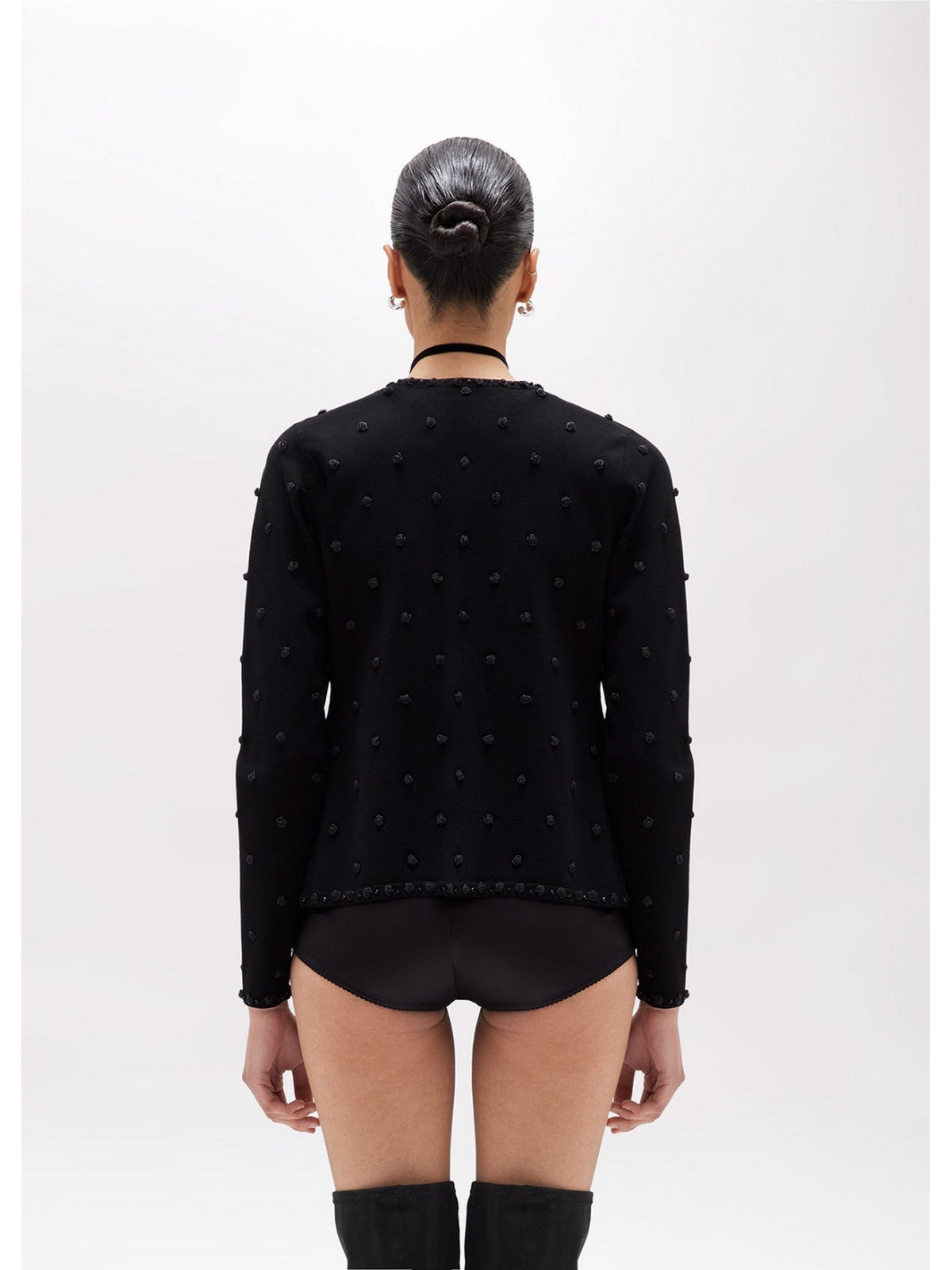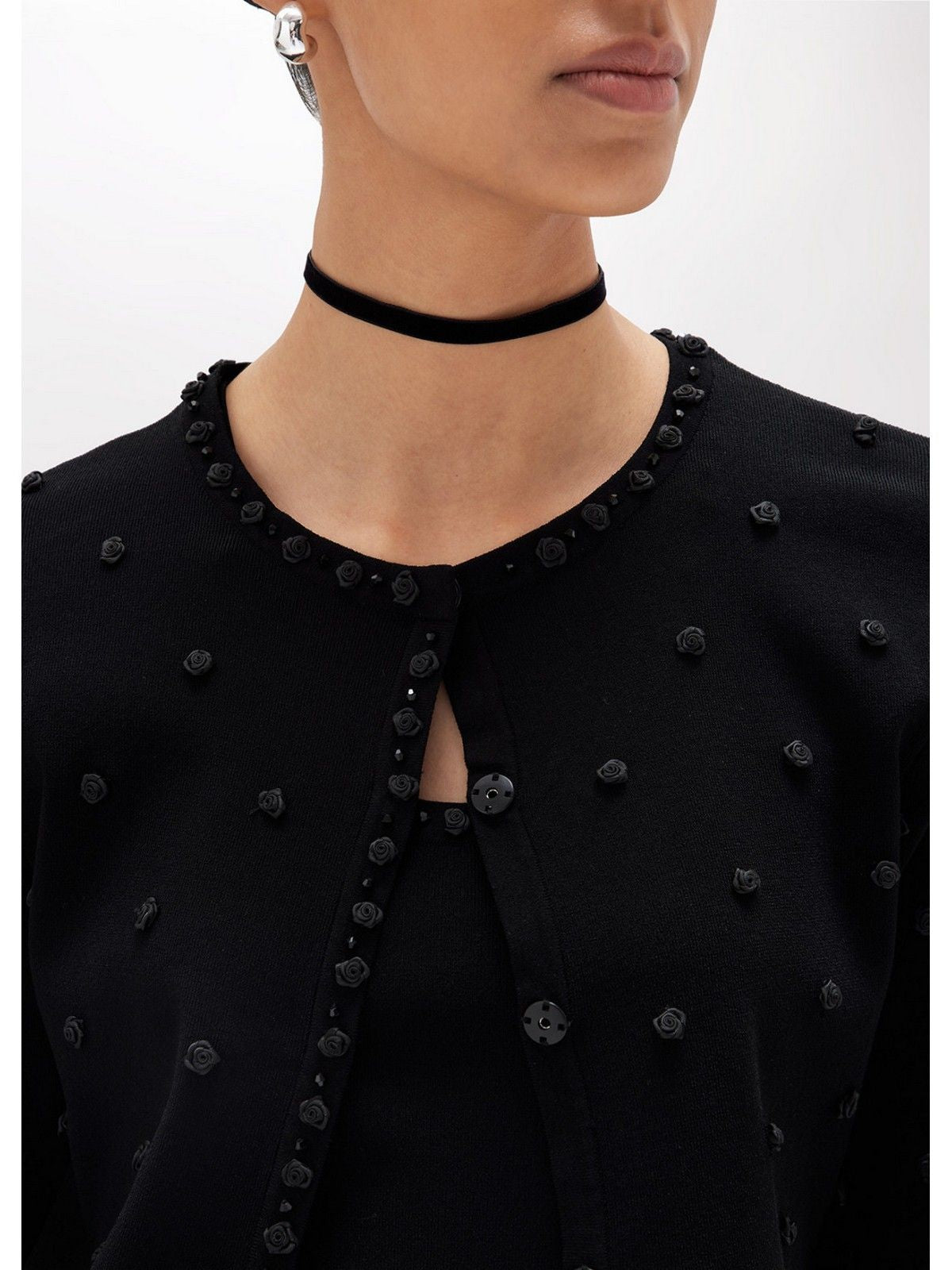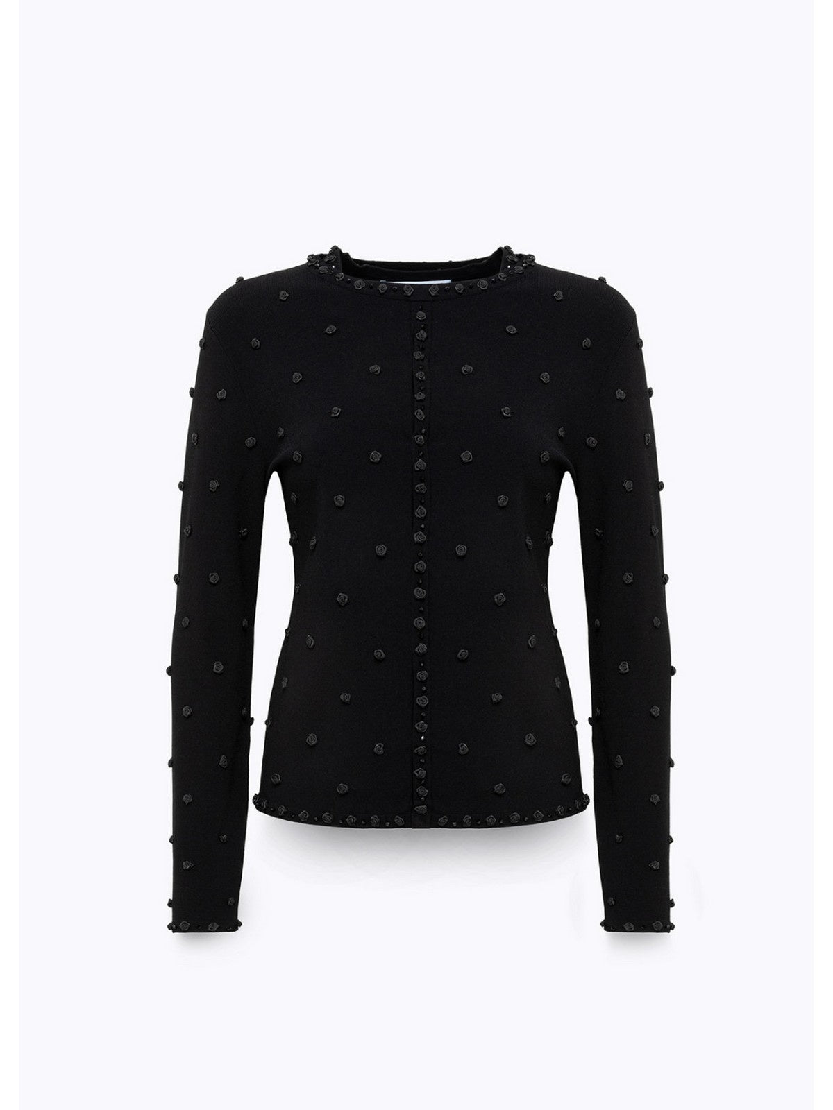 ELEGANZA ICONICA PER IL TWIN-SET IN MAGLIA DI VISCOSA RICAMATA DA ROSE IN RASO APPLICATE A MANO E PROFILI INTERVALLATI DA ROSE CON CORALLINI IN TONO. IL CARDIGAN DI LINEA DRITTA HA CHIUSURA CON BOTTONI AUTOMATICI, COLLO TONDO E MANICHE LUNGHE. IL TOP HA LINEA FITTED E SCOLLATURA AMPIA. DA INTERPRETARE IN UNA MIRIADE DI LOOK SPECIALI. COMPOSIZIONE: 83% VISCOSA 17% POLIESTERE