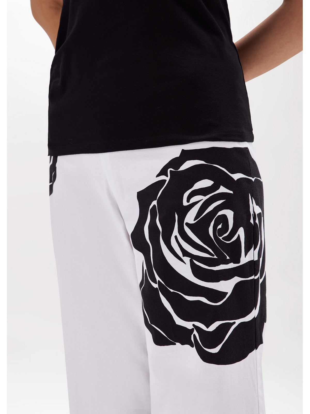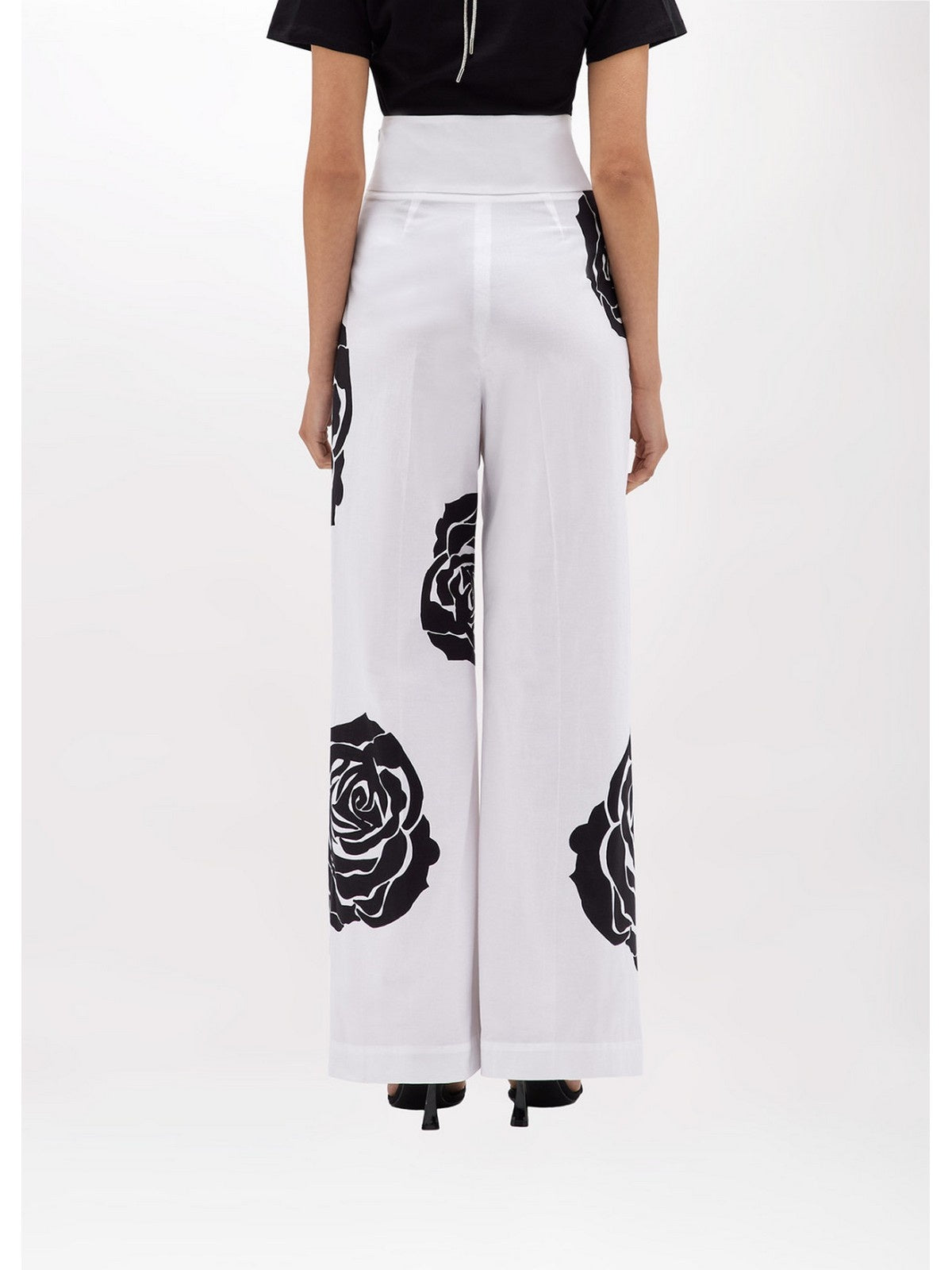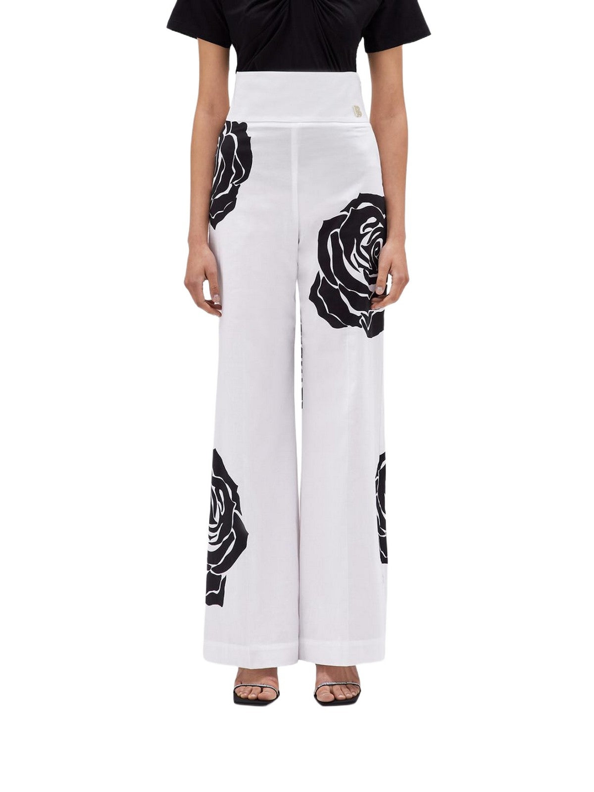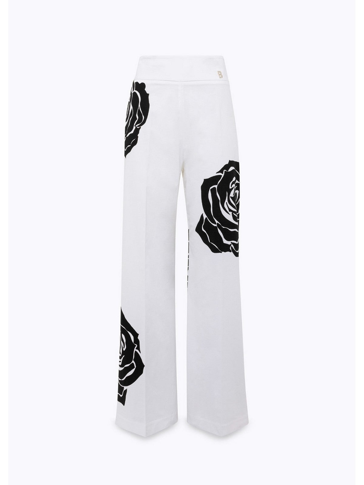 Pantaloni Donna Blugirl - Pantaloni In Popeline Con Stampa A Rose - Bianco