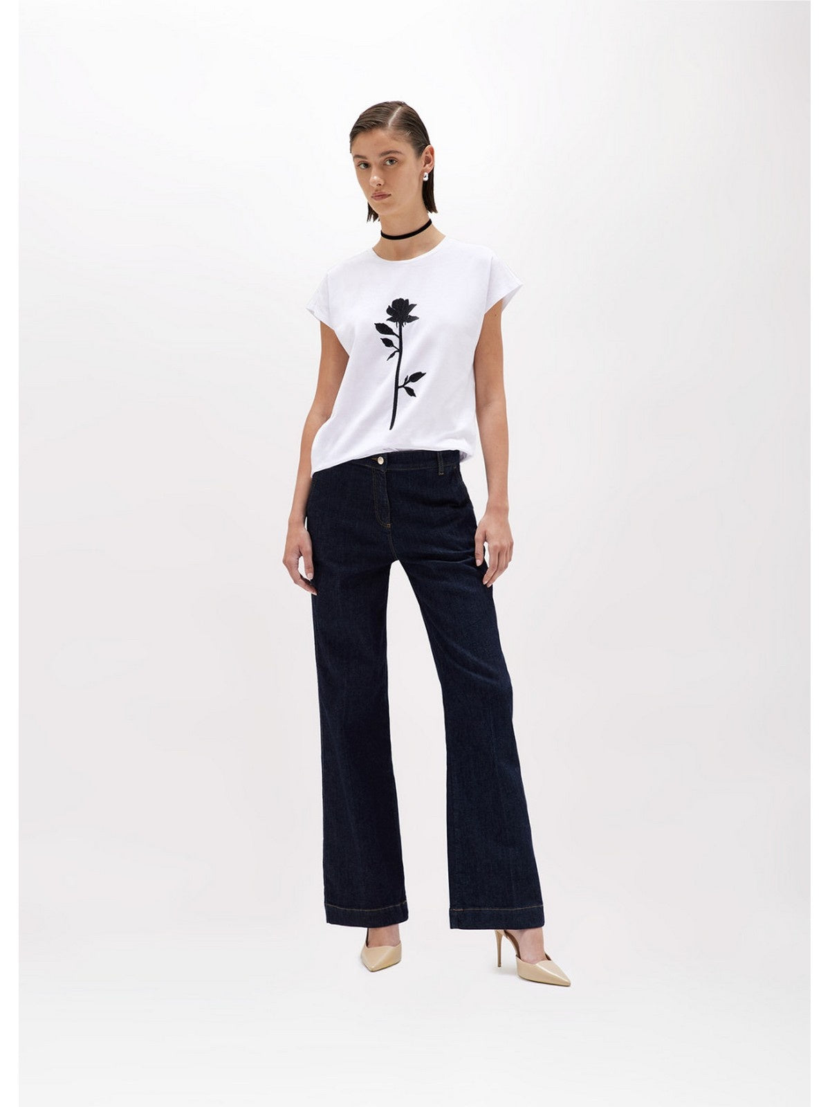 LA ROSA BLUGIRL È PROTAGONISTA DELLA T-SHIRT IN JERSEY DI COTONE STRETCH CON COLLO TONDO, MANICHE CORTE CON SPALLE SCESE. È CARATTERIZZATA DAL RICAMO IN FILO A CONTRASTO.COMPOSIZIONE: 95% COTONE 5% ELASTAN