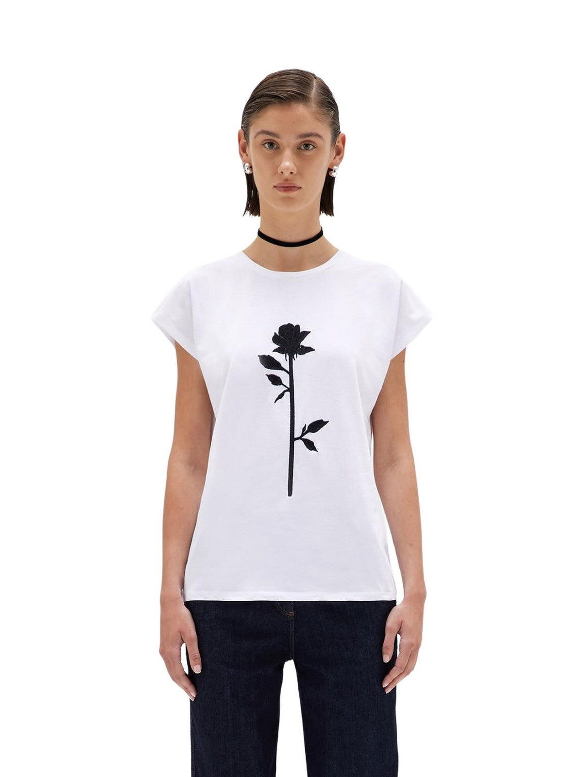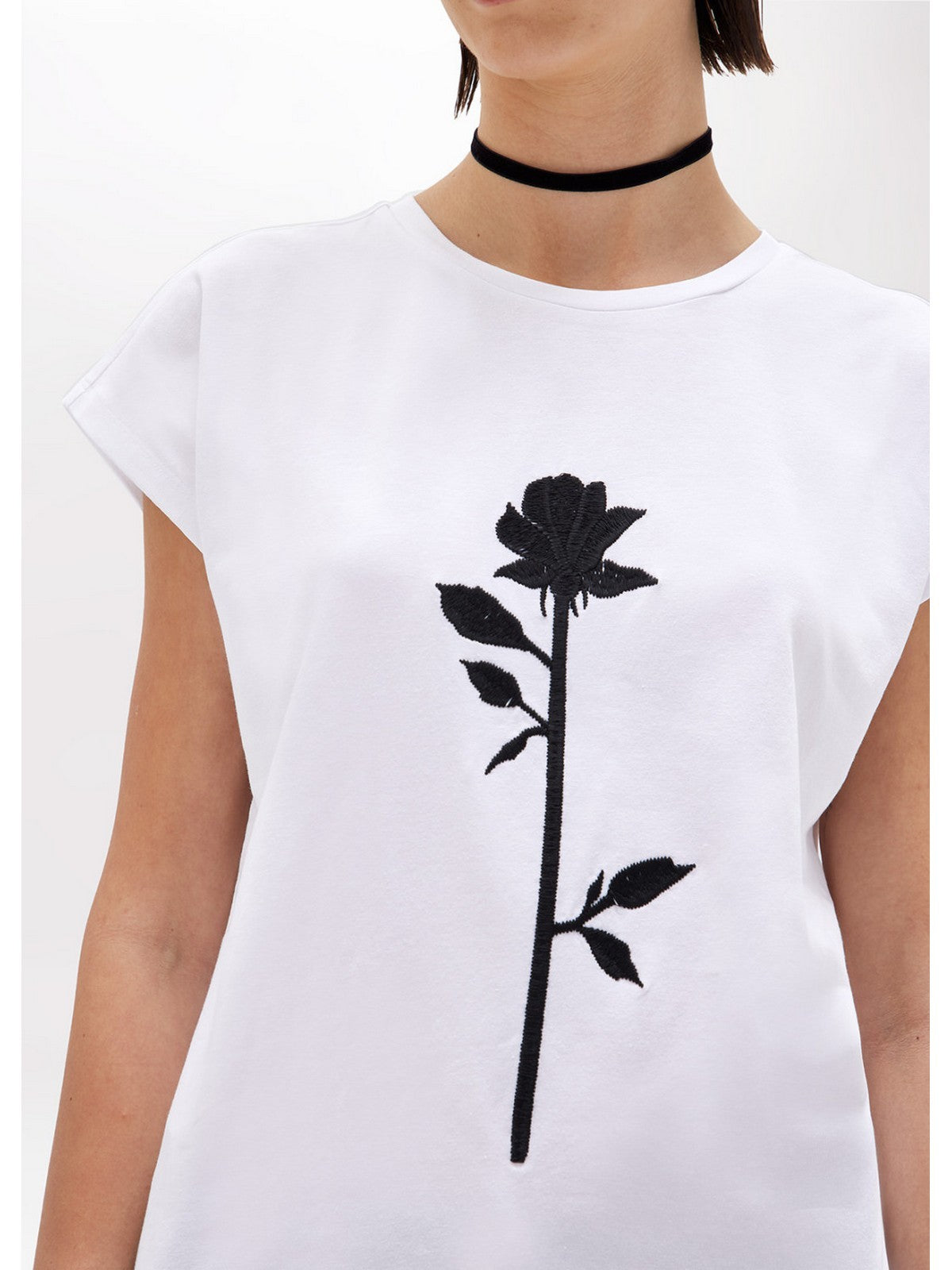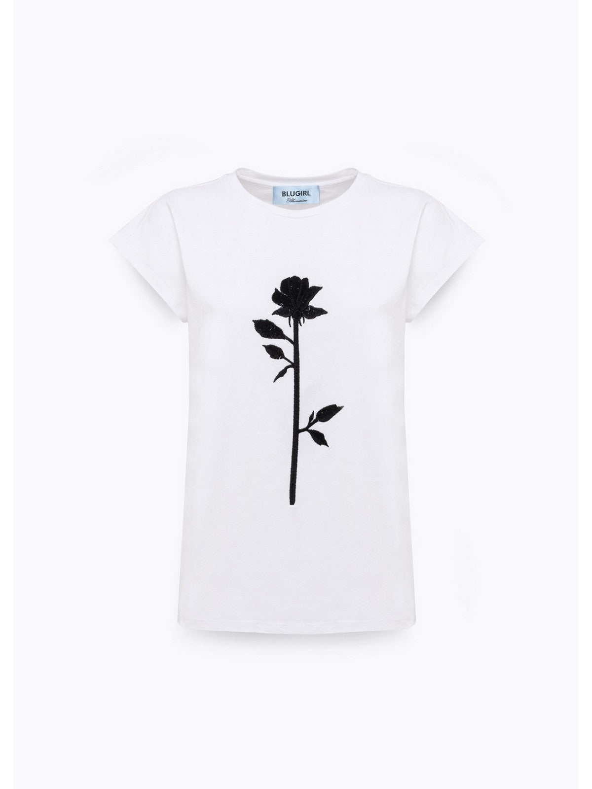 T-shirt Donna Blugirl - T-Shirt Con Rosa Ricamata - Bianco