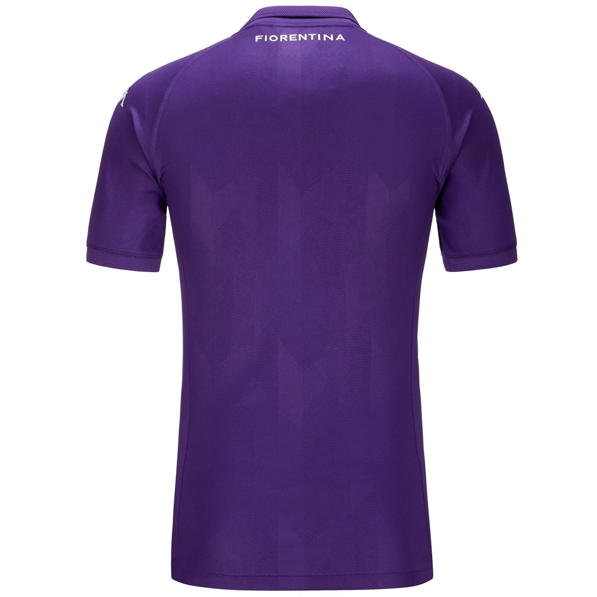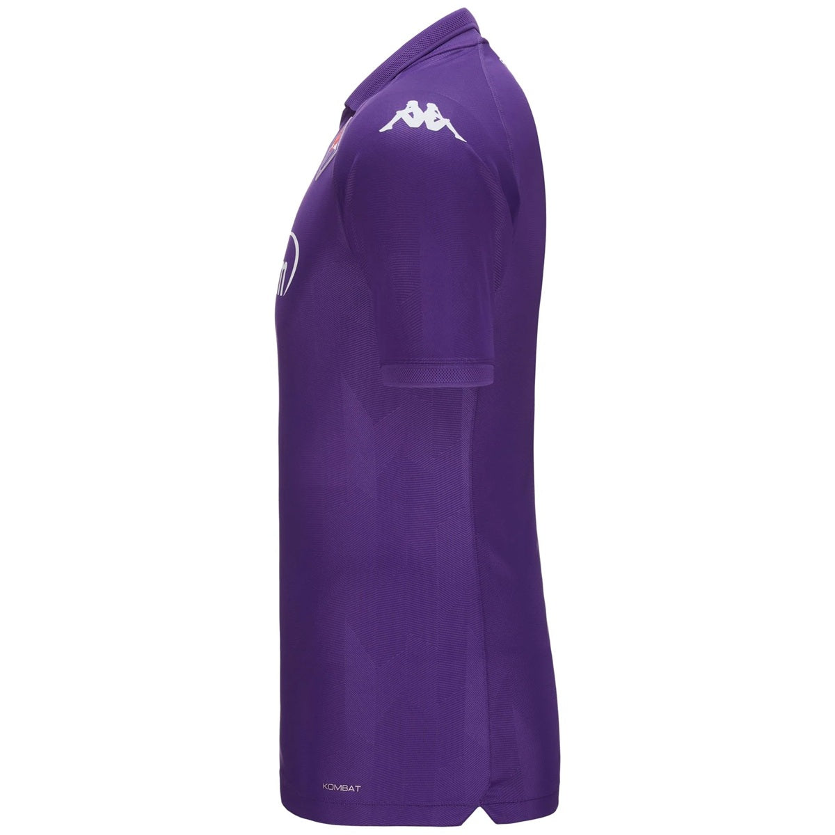 Maglia gioco KOMBAT PRO 2025 ACF FIORENTINA da uomo in tessuto elasticizzato riciclato e con tecnologia HYDRO-WAY PROTECTION, manica corta, colletto a polo e inserto sul fondo maniche in costina lavorata, grafica embossata sul fronte, sul retro e sulle maniche. Logo Omini sul petto in stampa HD e logo Omini sulle maniche realizzati in transfer applicati a caldo, 3D Team logo patch in silicone in transfer applicato a caldo e lettering retro collo e loghi interno collo realizzati in transfer. Vestibilità SKIN FIT. Salbini articoli tecnici per lo sport è rivenditore ufficiale Kappa .