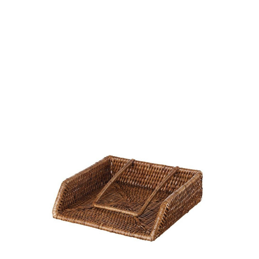 Portatovaglioli in rattan con struttura del manico in metallo. Elegante e funzionale, arreda con stile la sala da pranzo. Da abbinare agli altri complementi in rattan dell'ispirazione Modern Country per un arredamento in cui i dettagli si fondono in un'armonia perfetta.