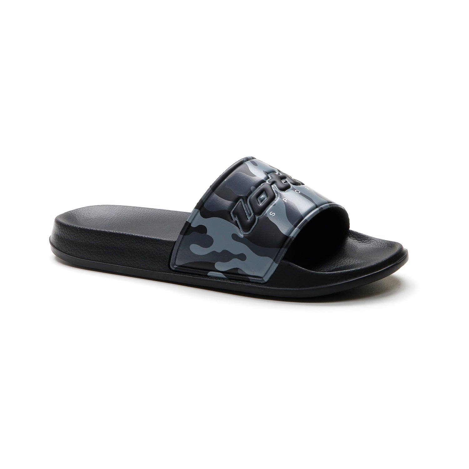 Ciabatte Lotto Camo Slide per un outfit estivo impeccabile. Ciabatte lotto perfette per le giornate al mare o in piscina, con fascia larga in PVC e logo Lotto, morbide e confortevoli con suola in EVA. Salbini articoli tecnici per lo sport è rivenditore ufficale Lotto .