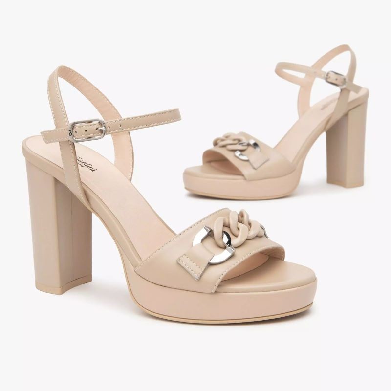 Sandalo da donna Nero Giardini in pregiata pelle italiana, con tacco a blocco di 10,5 cm e chiusura con cinturino regolabile alla caviglia. Interno e sottopiede in pelle traspirante per un comfort prolungato, suola in gomma antiscivolo per stabilità. Realizzato con tecniche artigianali in Italia e decorato con la bandiera tricolore sulla suola e sul packaging