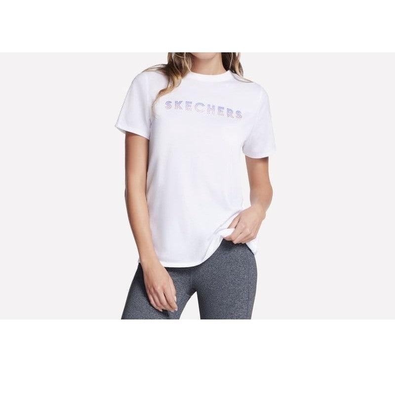 Rilassati con il tuo brand preferito e indossa la t-shirt a maniche corte Skechers Gradient. Questa t-shirt dalla vestibilità classica è realizzata nel nostro tessuto traspirante SKECH JERSEY? e presenta una grafica Skechers sfumata al centro del petto.