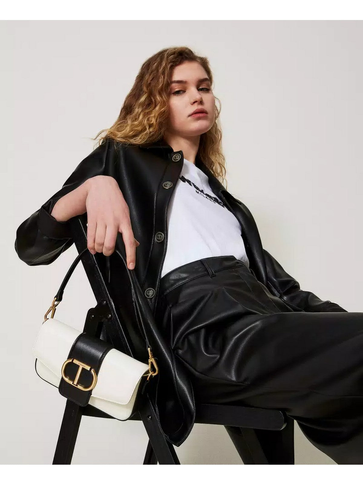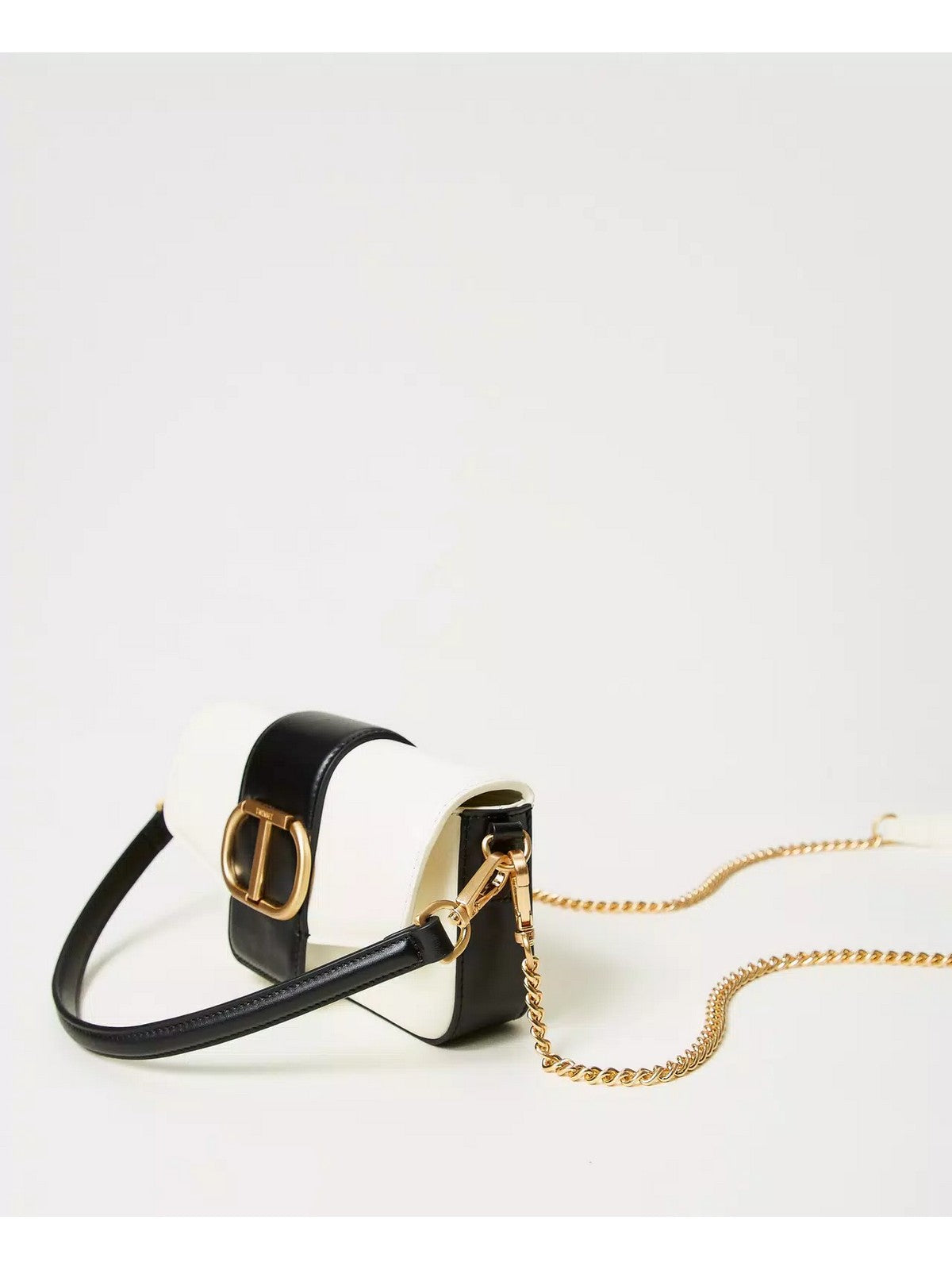 Borsa a tracolla TWINSET ?Amie' top handle in pelle di vitello liscio bicolore personalizzata da logo Oval T in metallo