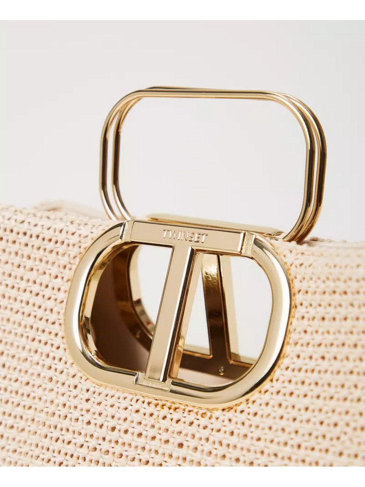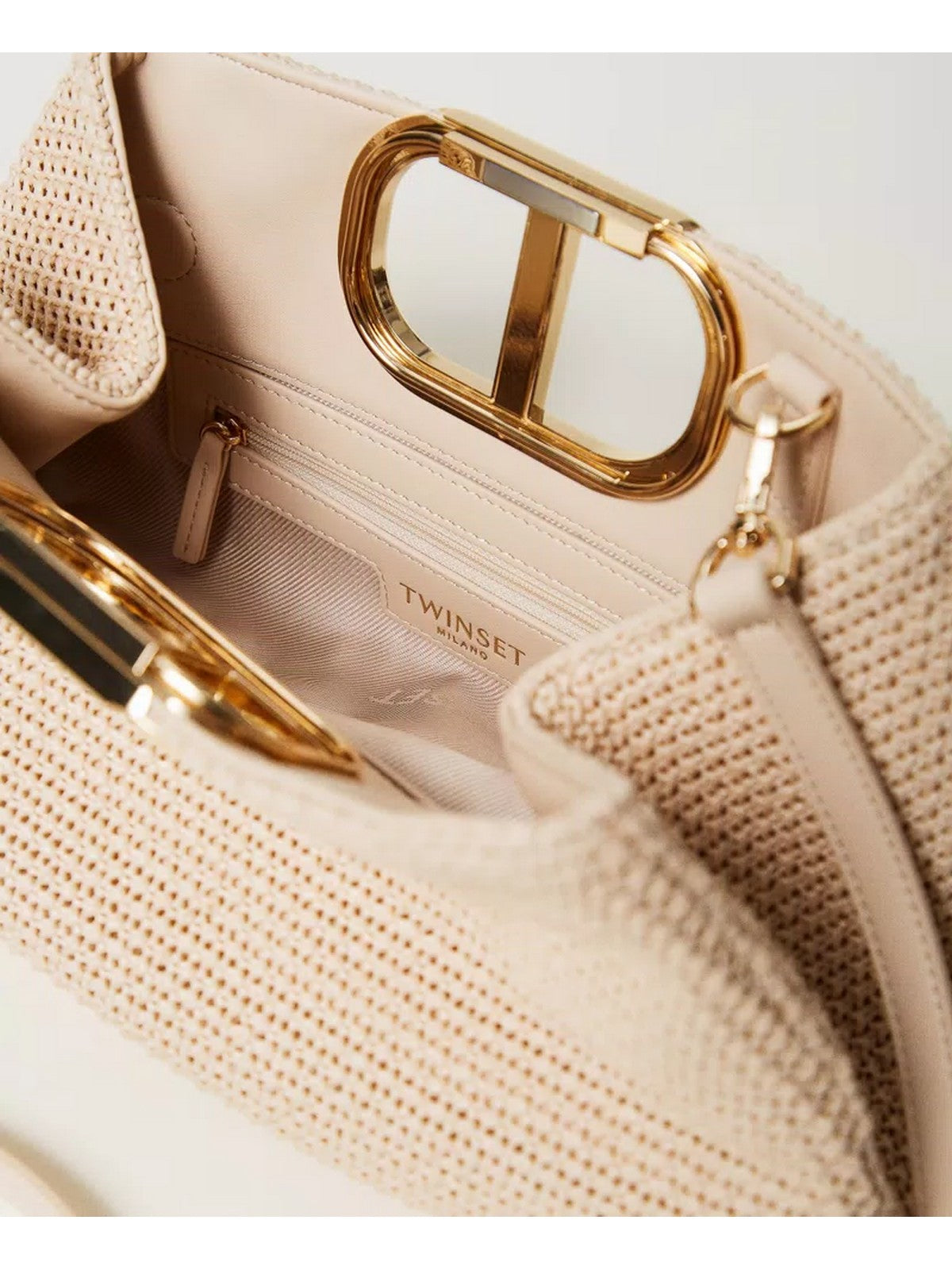 Borsa a tracolla TWINSET ?Lila' morbida effetto paglia intrecciata a telaio con manico Oval T in metallo.