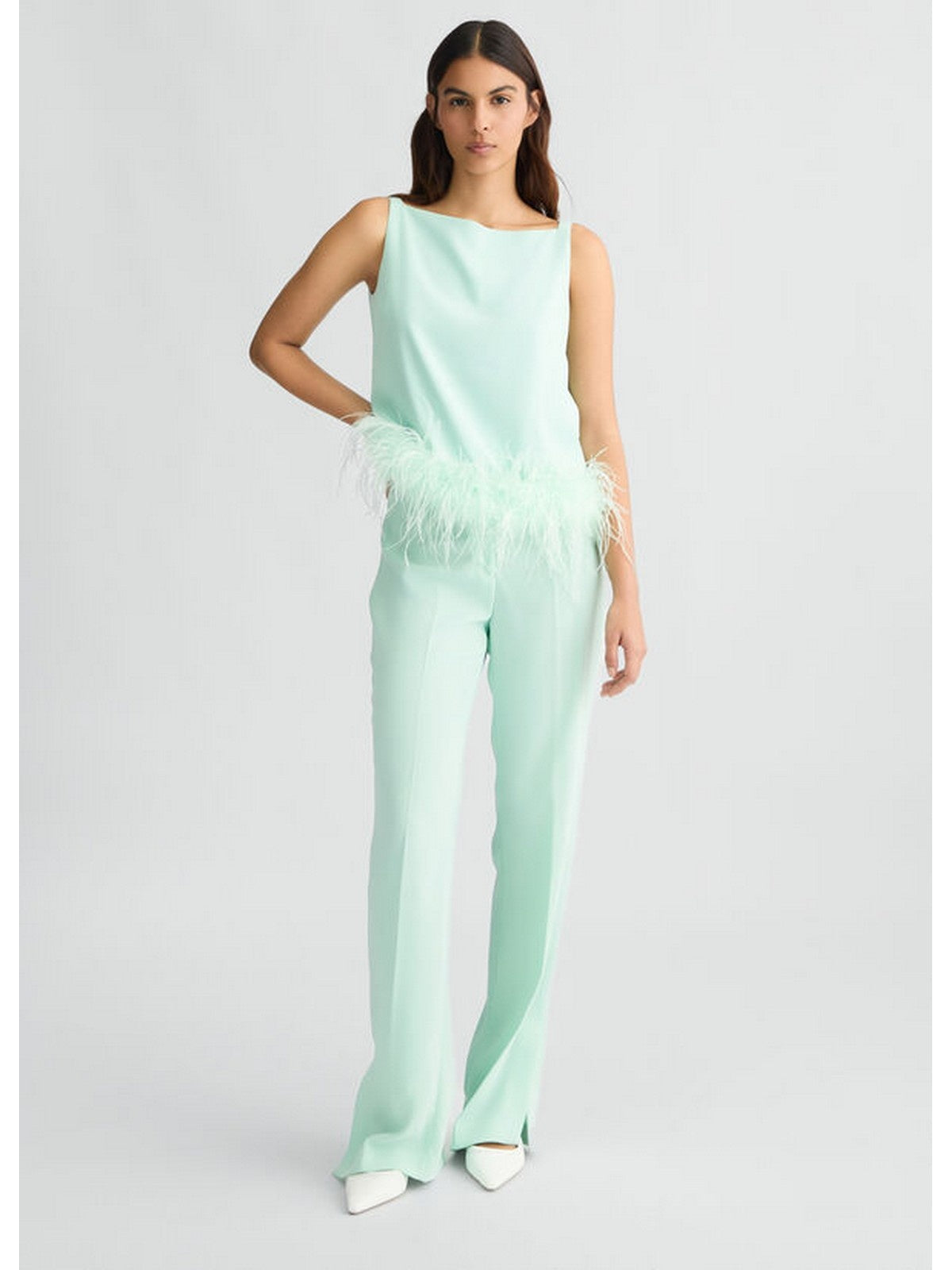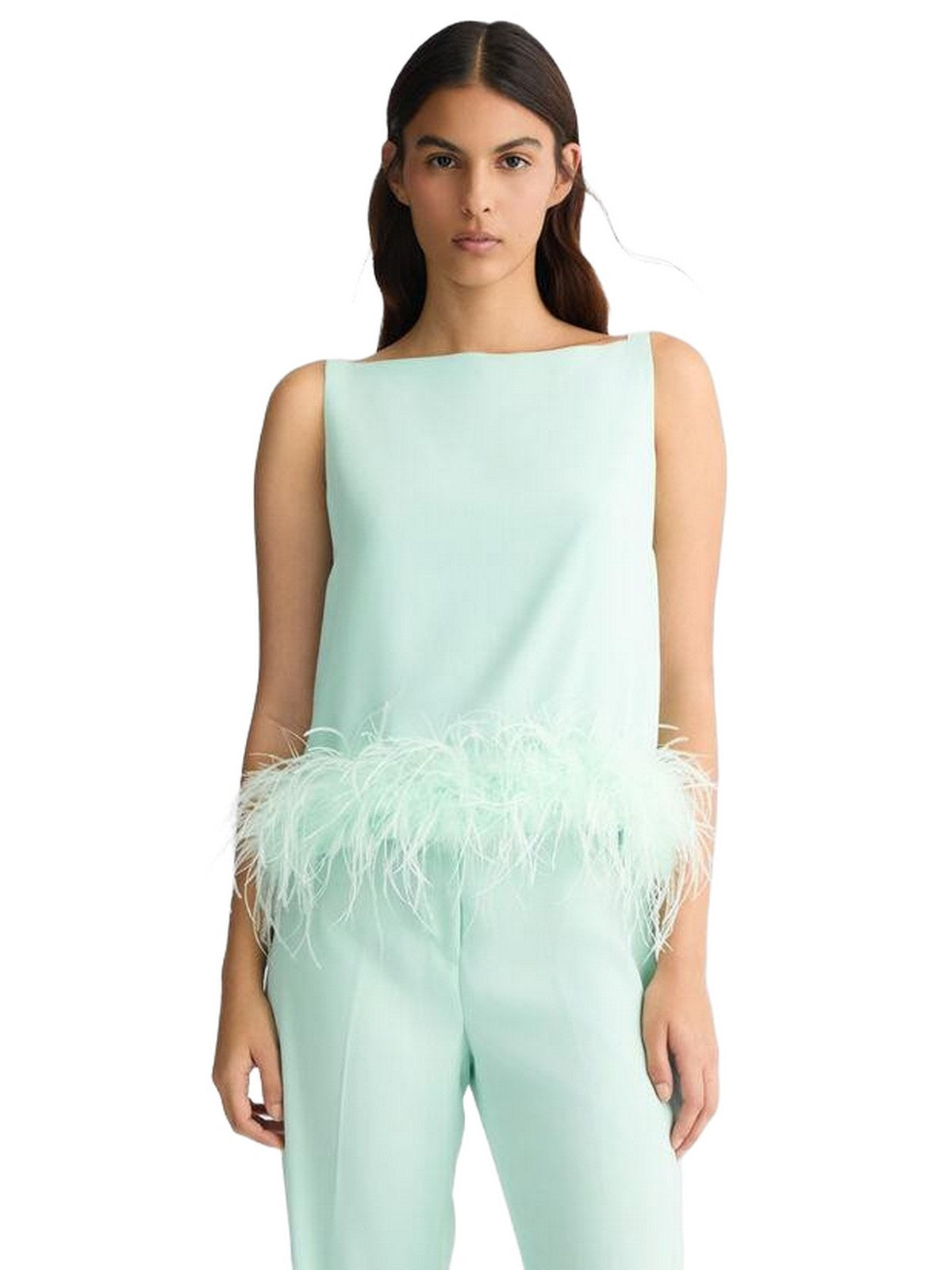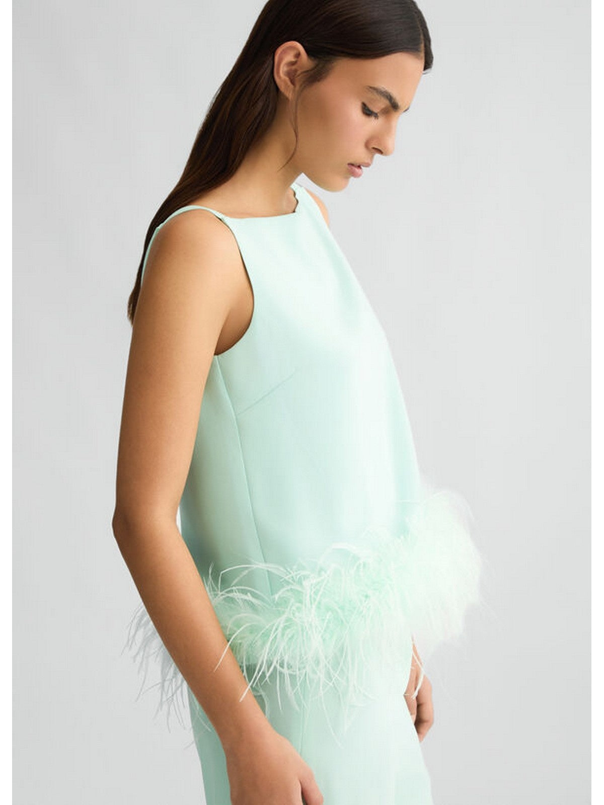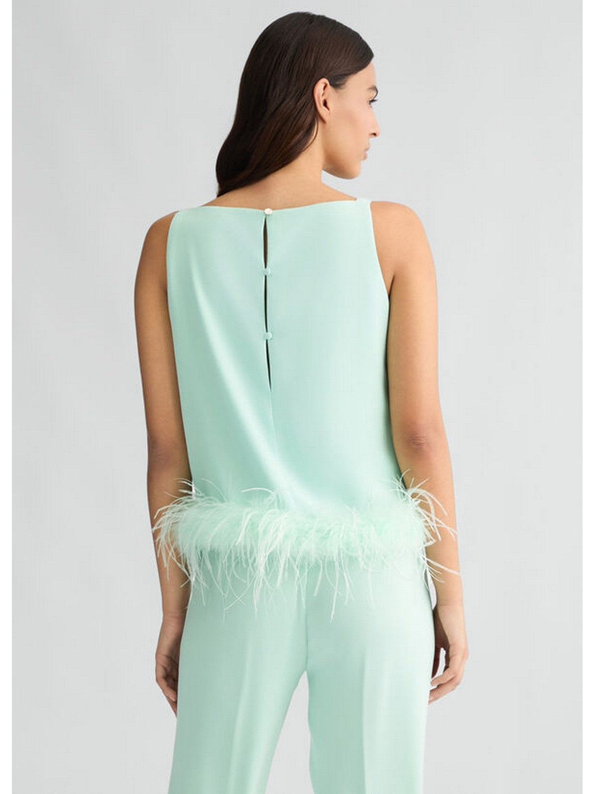 Canotte e top Donna Liu Jo - Top verde acqua con piume - Verde