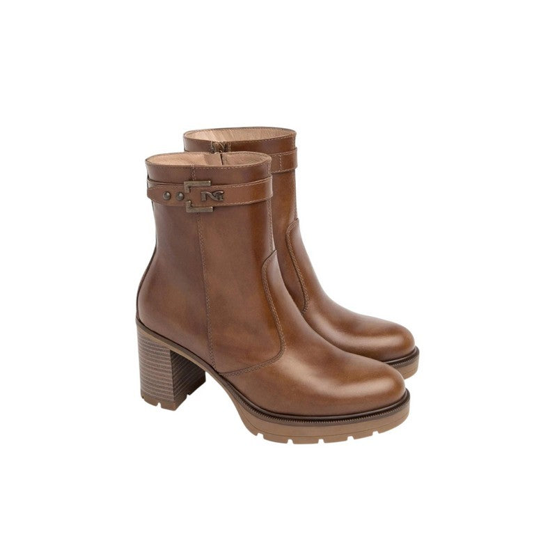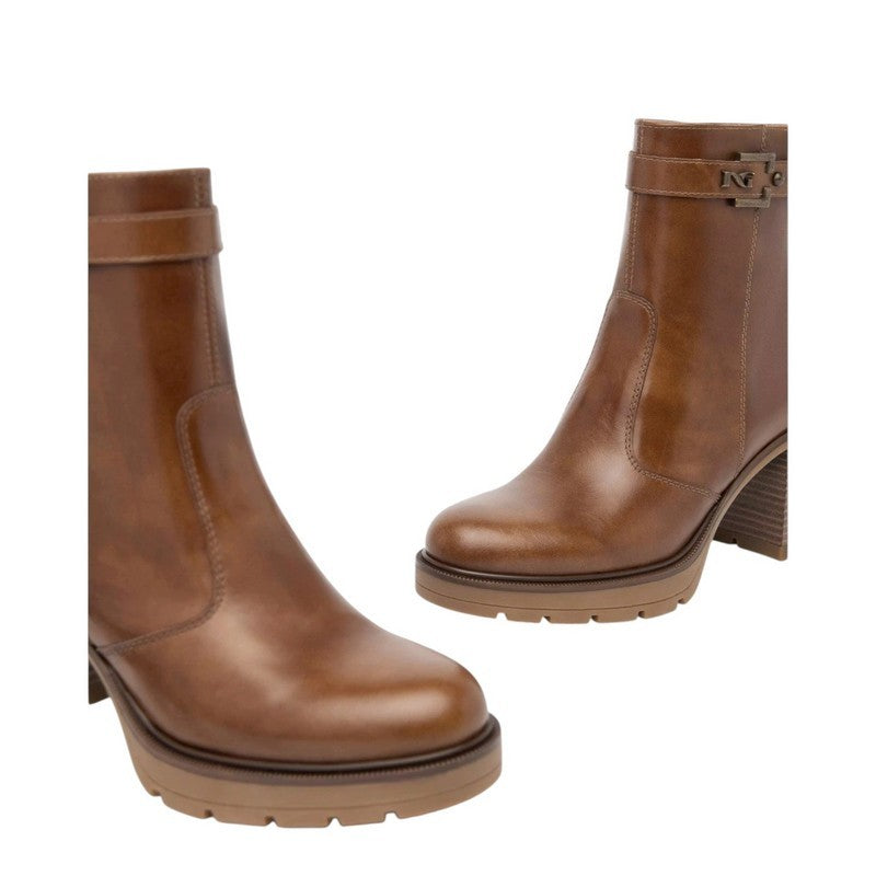 Un mix di grinta ed eleganza quotidiana, questo stivaletto NeroGiardini è la scelta ideale per chi ama distinguersi con classe anche nelle giornate più frenetiche. Il colore cuoio caldo e versatile, unito al design con tacco largo e dettagli metallici, lo rende un must-have della stagione.